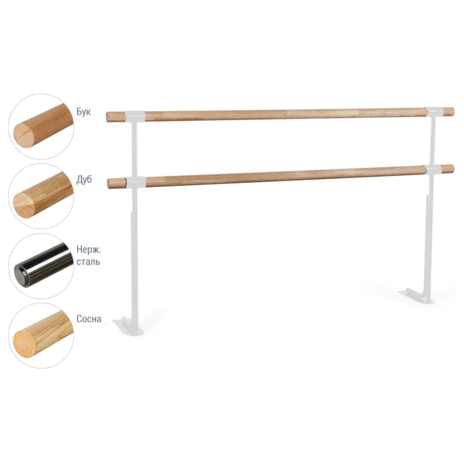Хореографический станок двухрядный напольный №1 бук, белый цвет ножек