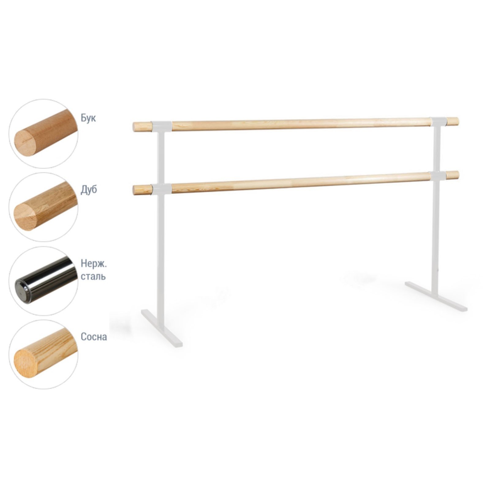 Переносной хореографический станок двухрядный №7 дуб, белый цвет ножек
