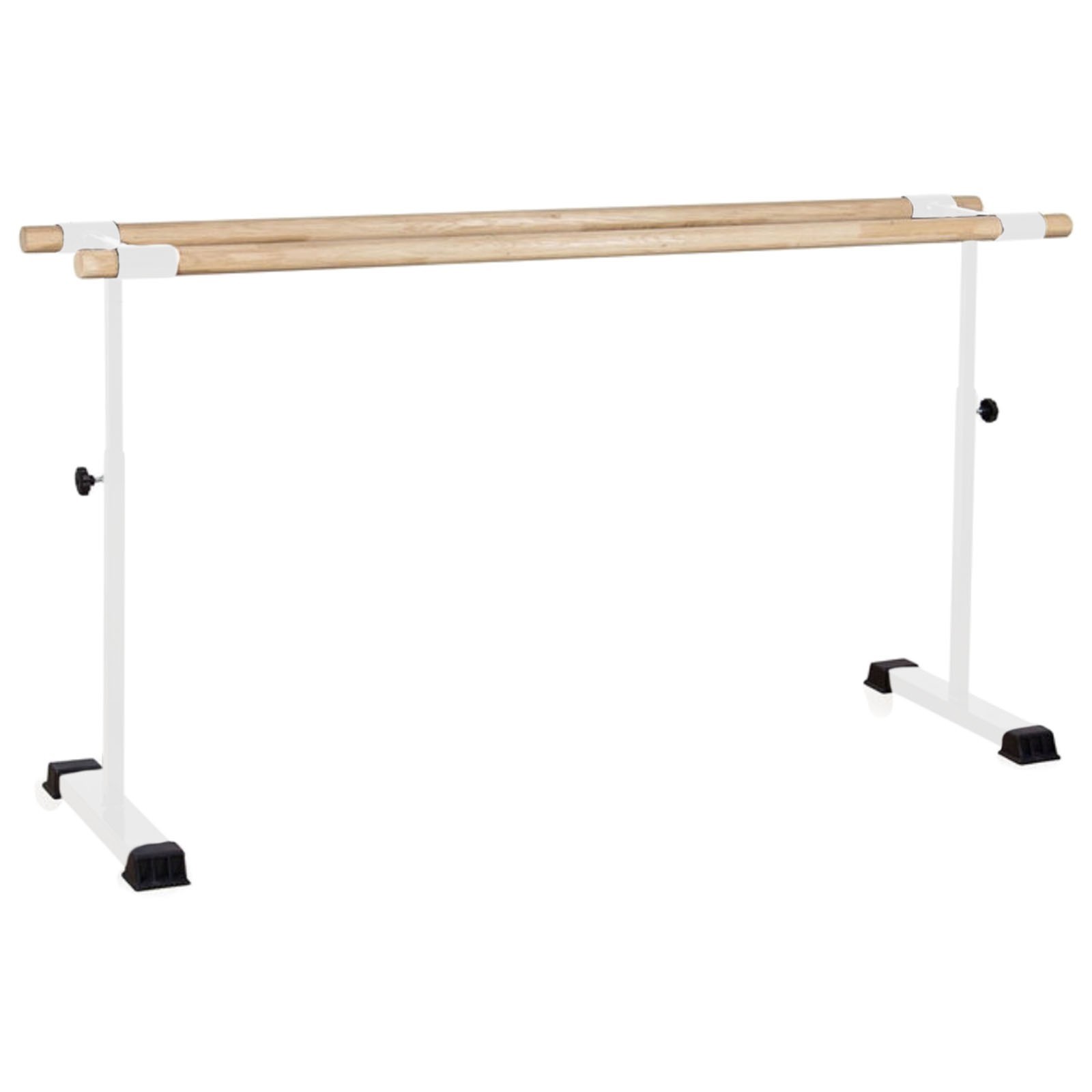 Переносной хореографический станок регулируемый №10 нерж. сталь, белый цвет ножек. Регулируемый по высоте танцевальный станок с двумя поручнями, расположенными в одной горизонтальной плоскости (расстояние между центрами жердей - 30 см)На концах опор мобильного балетного станка установлены травмобезопасные заглушки. Они же защищают пол от царапин. Напольная часть опор изготовлена из усиленного стального профиля, что делает станок более устойчивым по сравнению с легкими моделями (общий вес - 14 кг)Высота станка от пола регулируется в диапазоне 75-110 смКаждый поручень крепится к опорам при помощи двух саморезов с каждой стороныДлина поручня (ширина станка): 200 см. Диаметр поручней: 50 ммРазборная конструкция опорТип -переноснойТип покраски металлических поверхностей: порошковая Материал поручня (жерди): Нержавеющая сталь  развернуть описание ▼