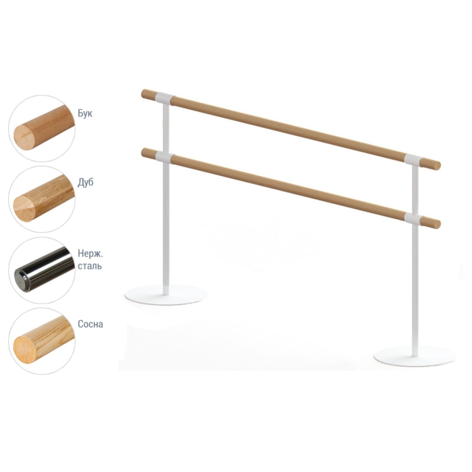 Переносной хореографический станок двухрядный №11 дуб, белый цвет ножек