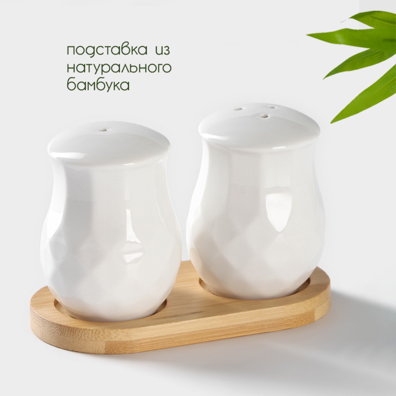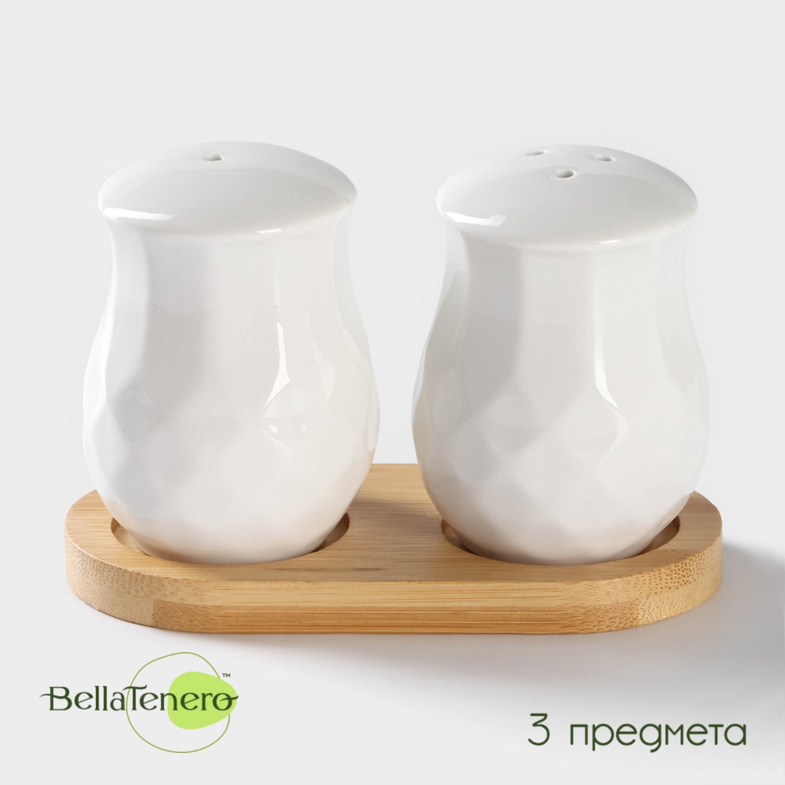 Набор фарфоровый для специй на бамбуковой подставке Bellatenero, 3 предмета: солонка 130 мл, перечница 130 мл, подставка, цвет б