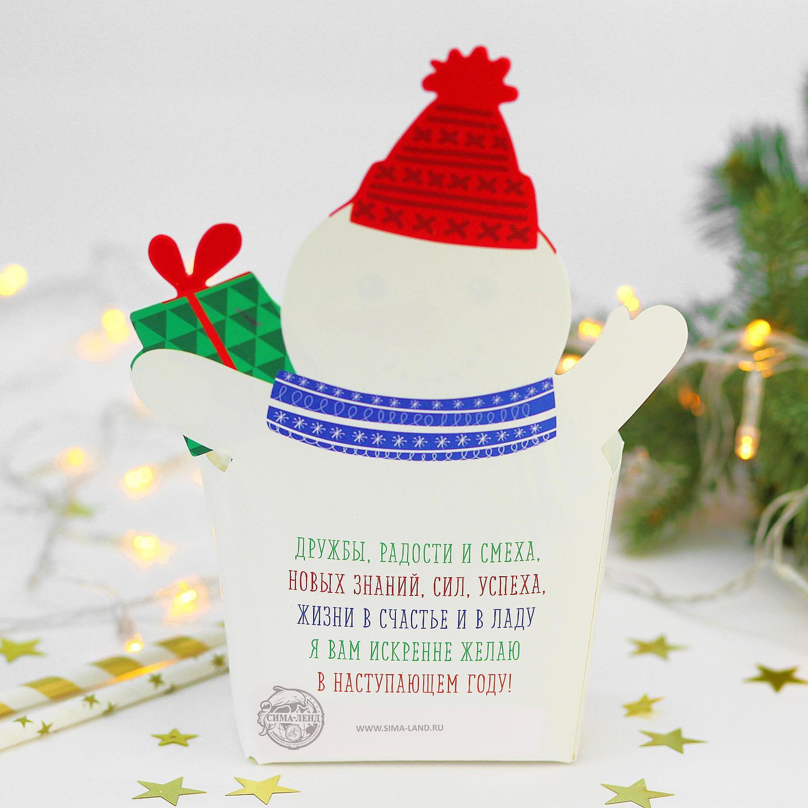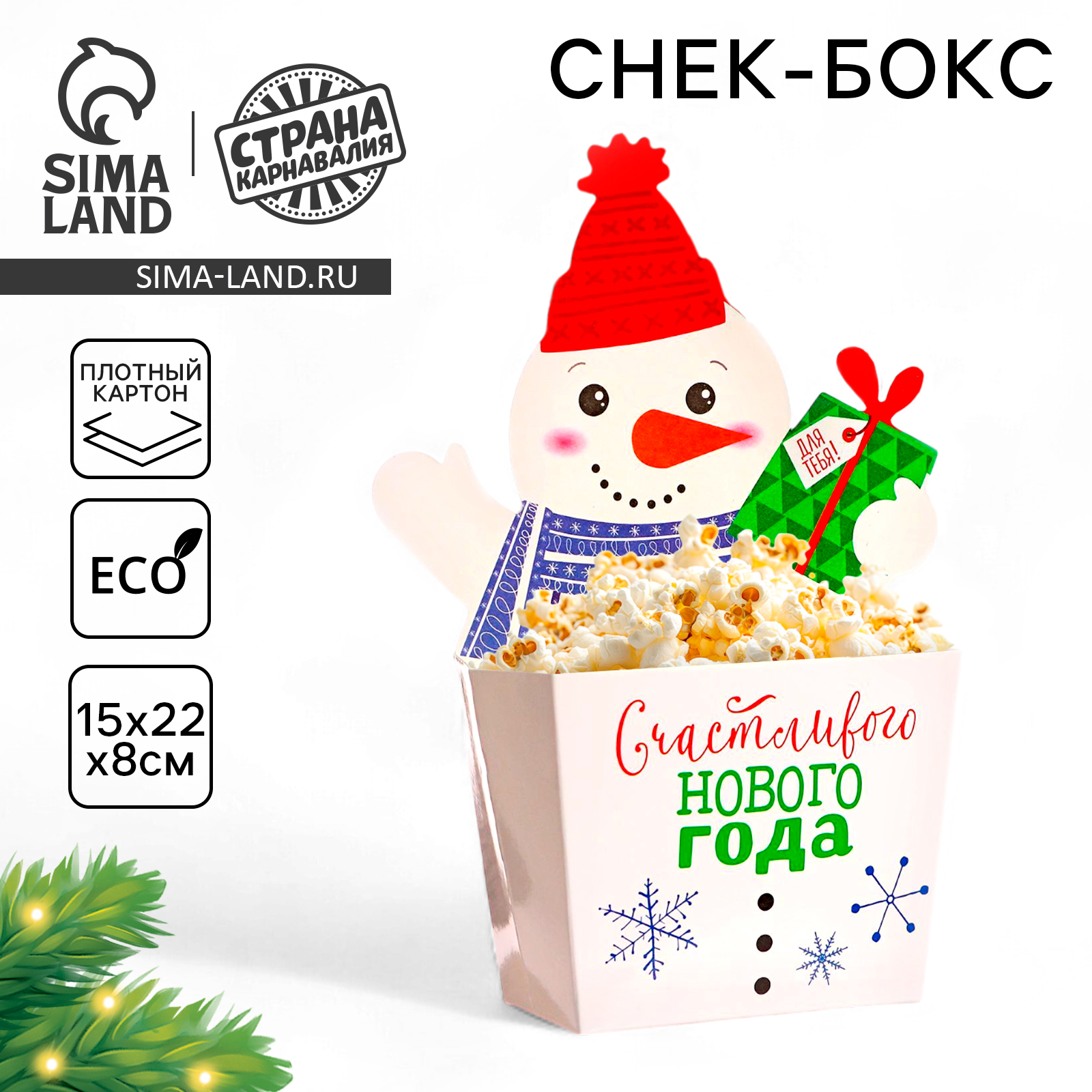 Снек-бокс для попкорна и снеков «с новым годом!», снеговичок. Снек-бокс — это отличный выбор для украшения праздничного стола. Наполните его различными сладостями — попкорном, печеньем, конфетами, зефиром. Это очень удобно, особенно для детского торжества: яркий дизайн непременно привлечёт внимание малышей. К тому же такая ёмкость абсолютно безопасна в использовании, и её легко утилизировать. Цвет:Разноцветный|Форма:Прямоугольная|Плотность, г/м :300|Длина, см:15|Ширина, см:15|Высота, см:22|Тематика:Новогодняя|Символ года:Нет|Тематика праздника:Новый год|Материал:Картон|Страна:Китай  развернуть описание ▼