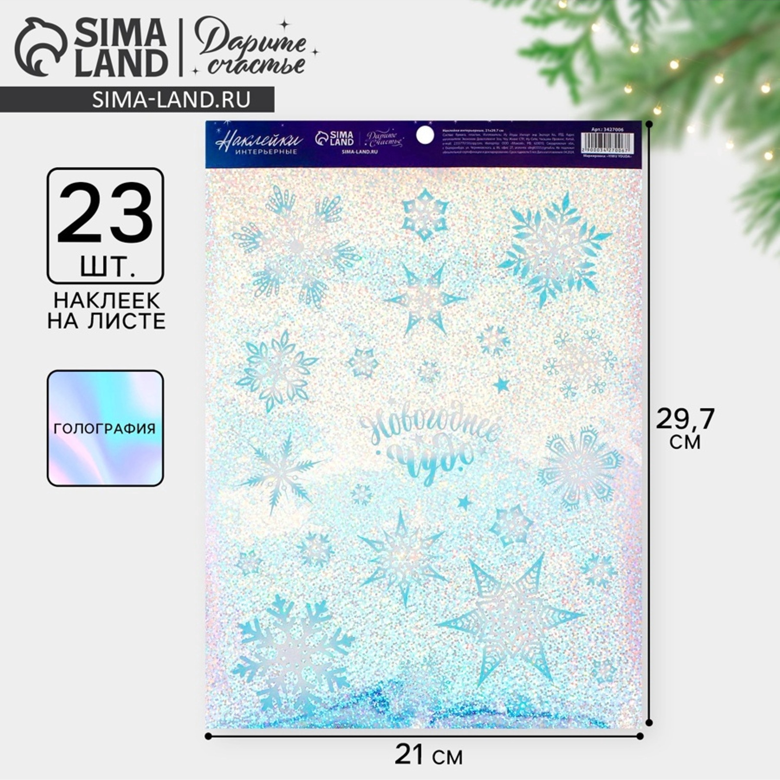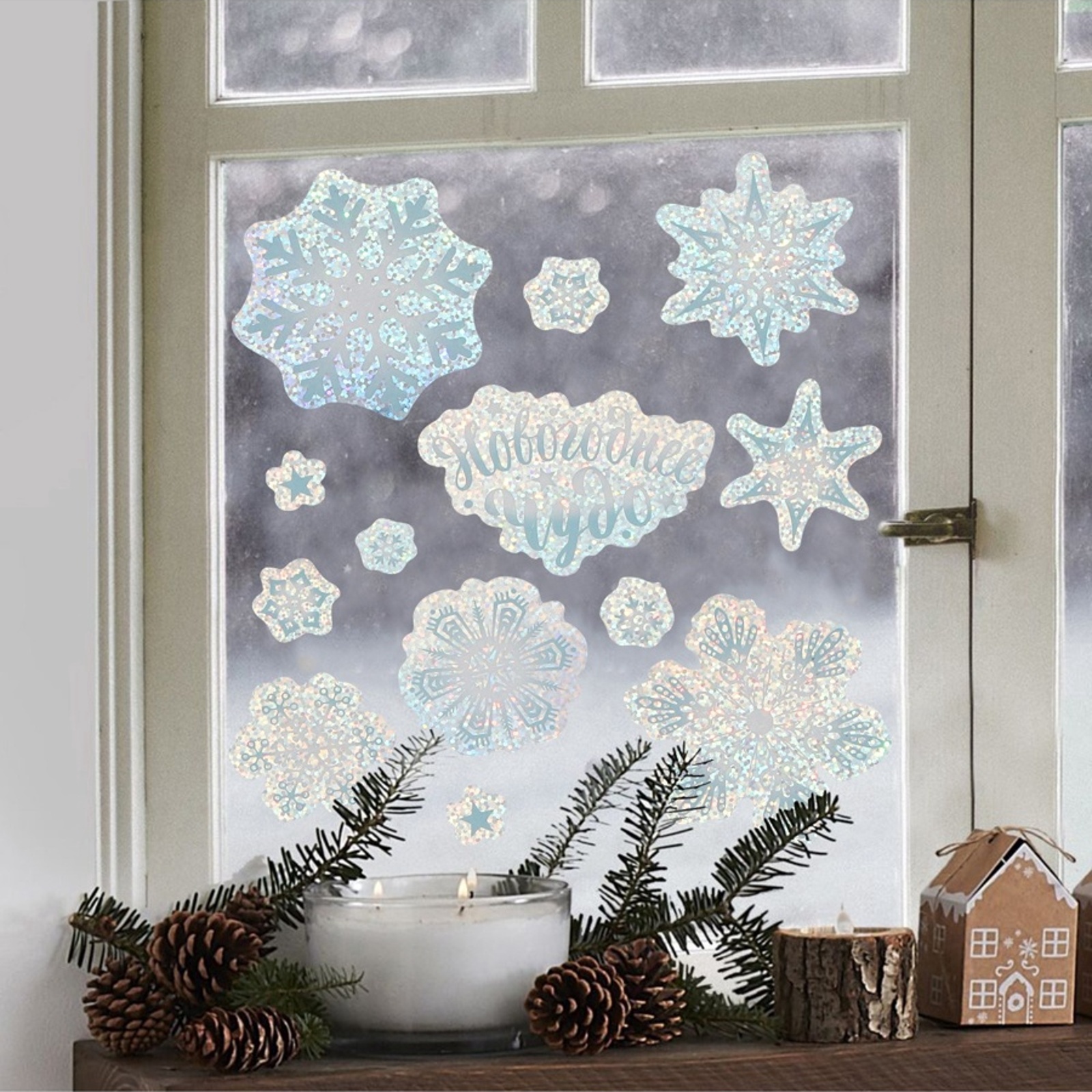 Наклейки новогодние интерьерные «снежинки», голография, 21 х 29.5 см
