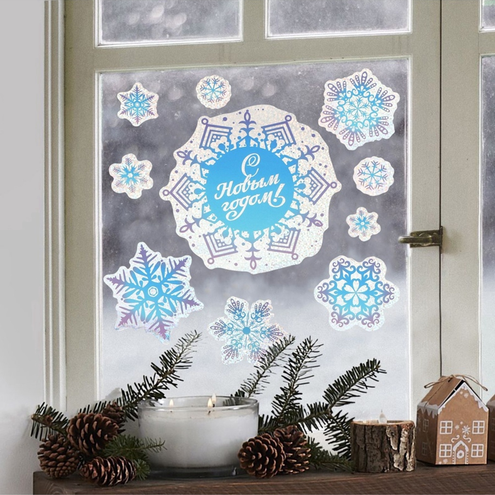 Наклейки новогодние интерьерные «с новым годом», голография, 21 х 29.5 см