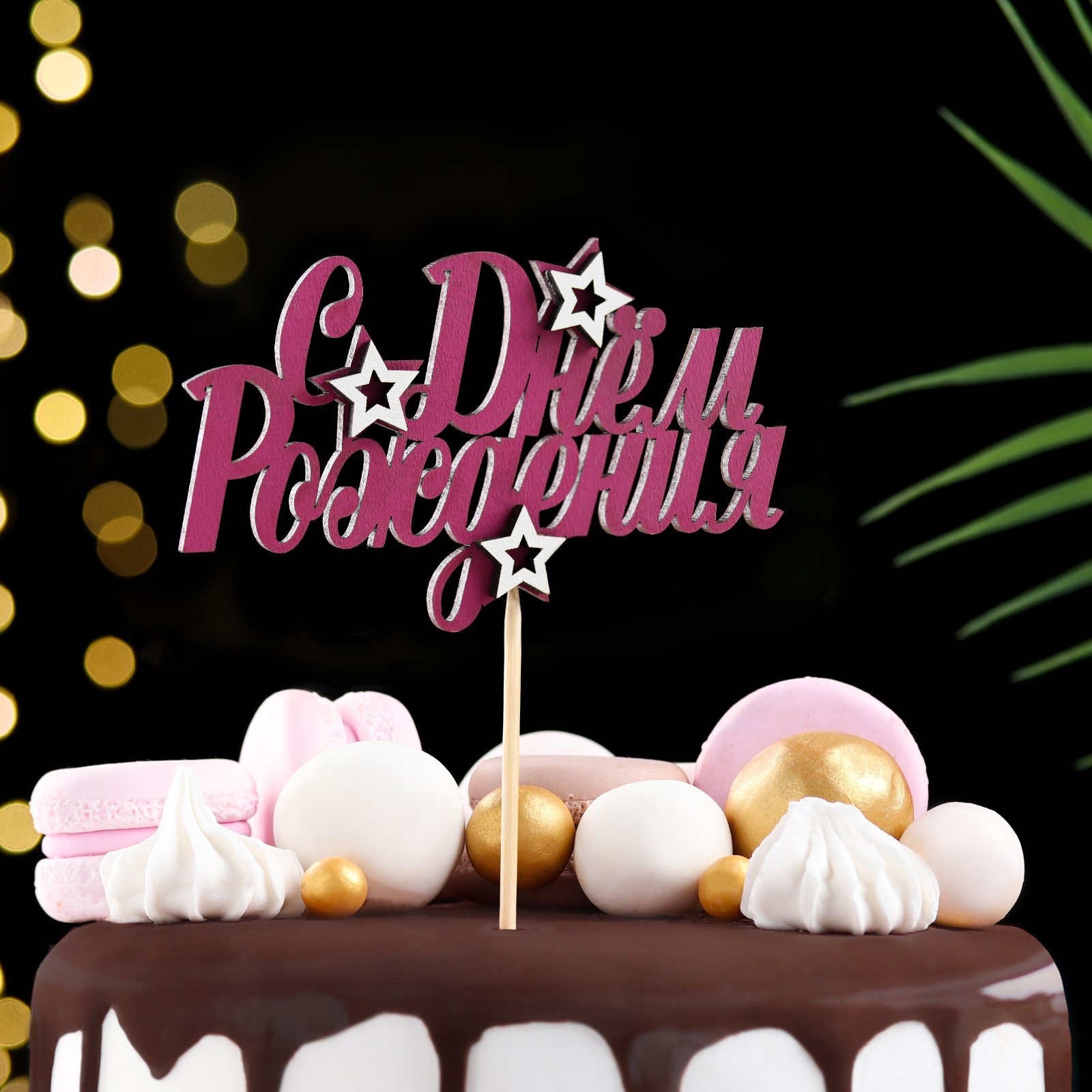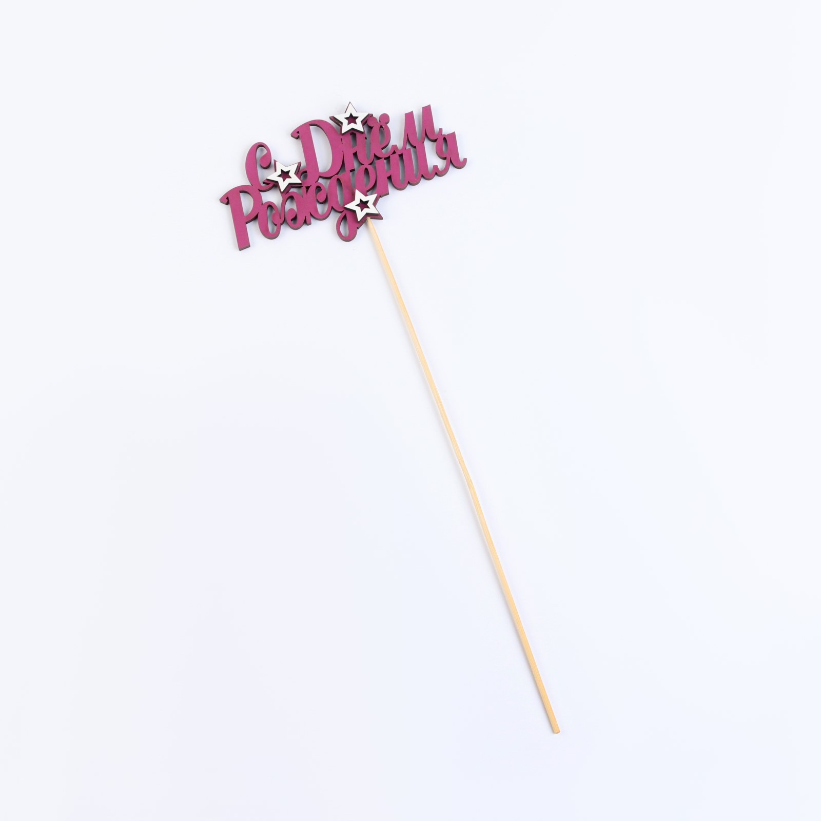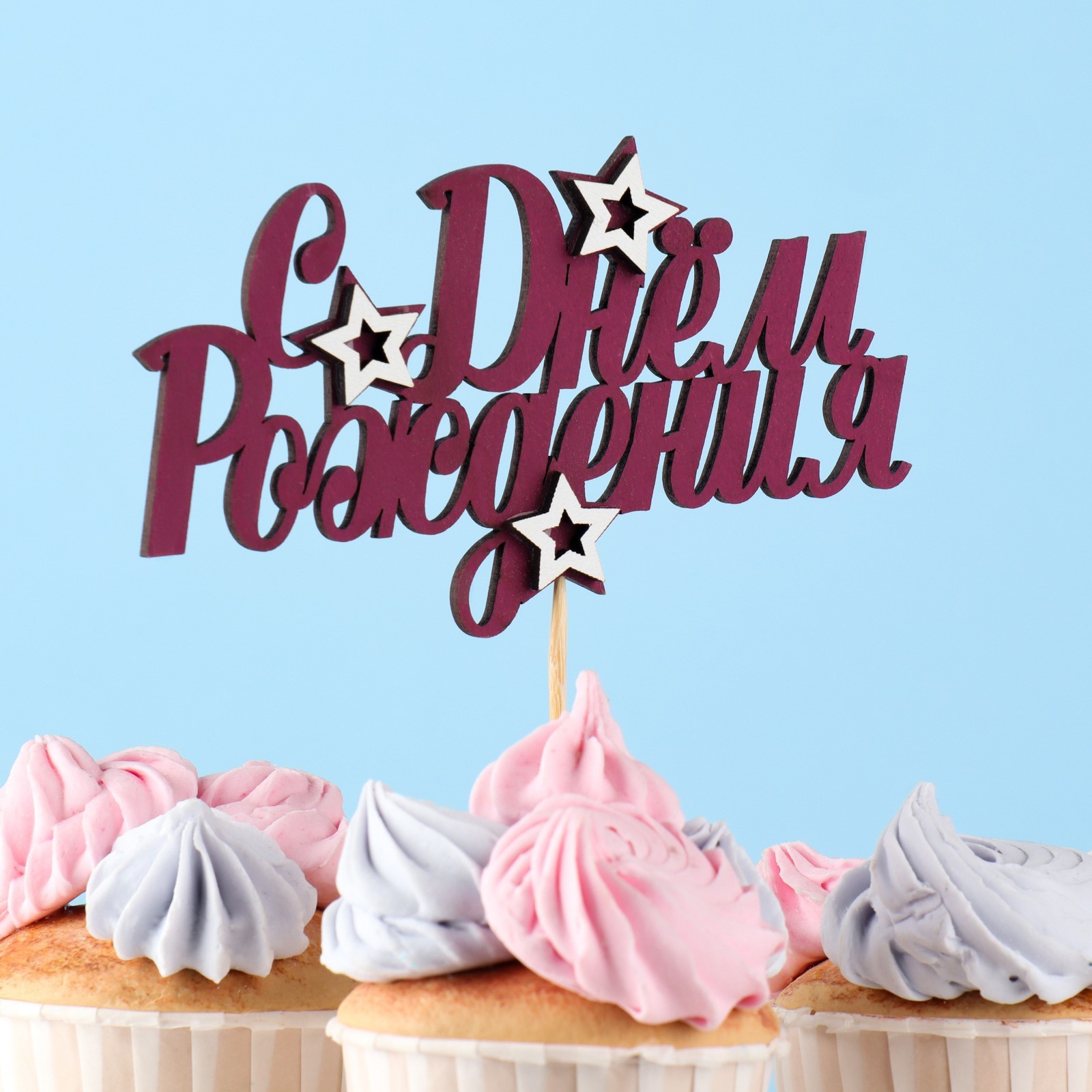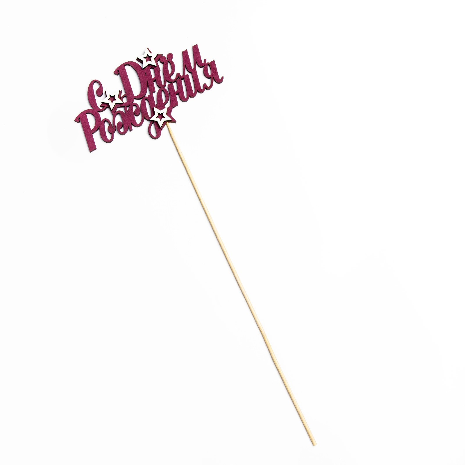 Топпер с декором "с днем рождения", бордовый 13х7,5 см