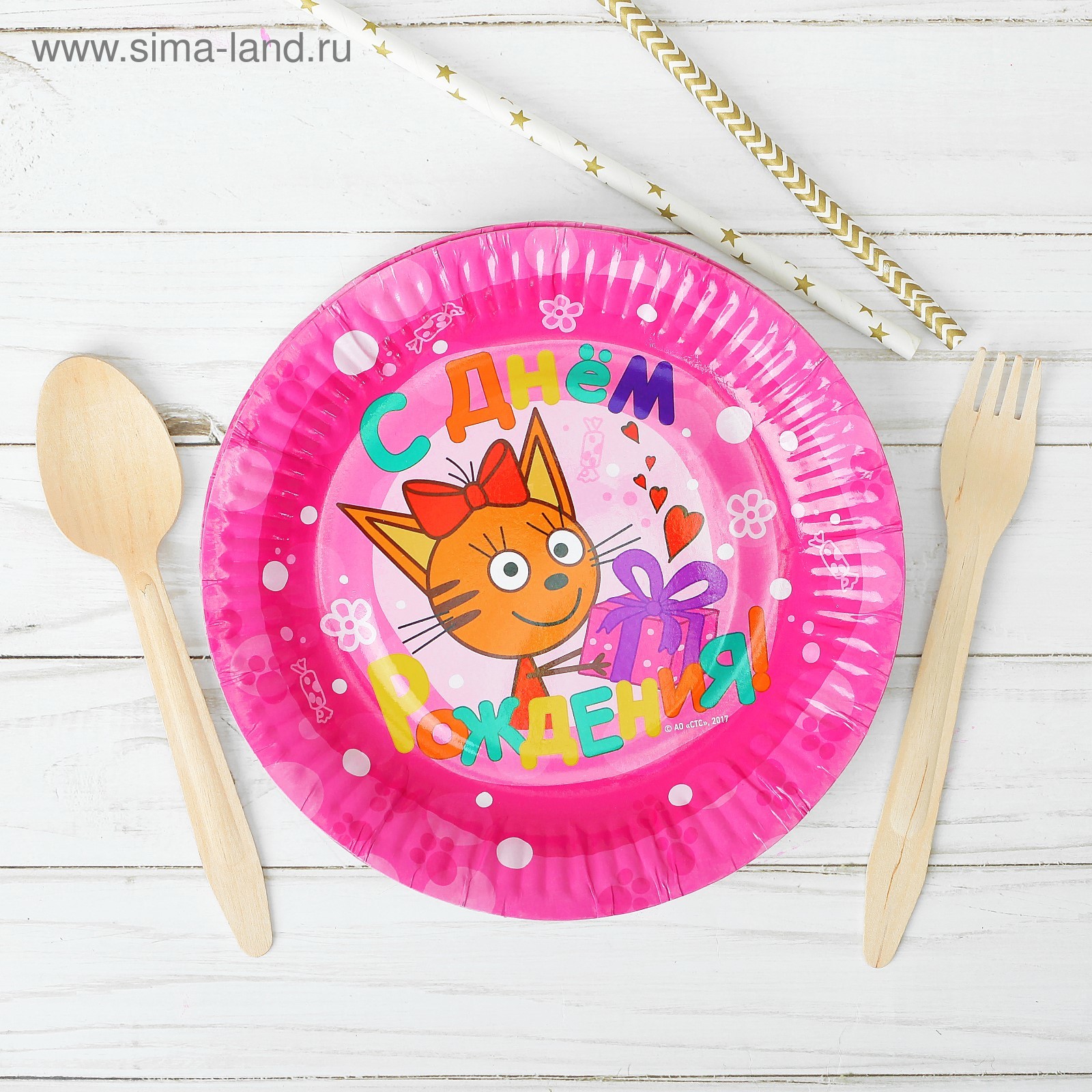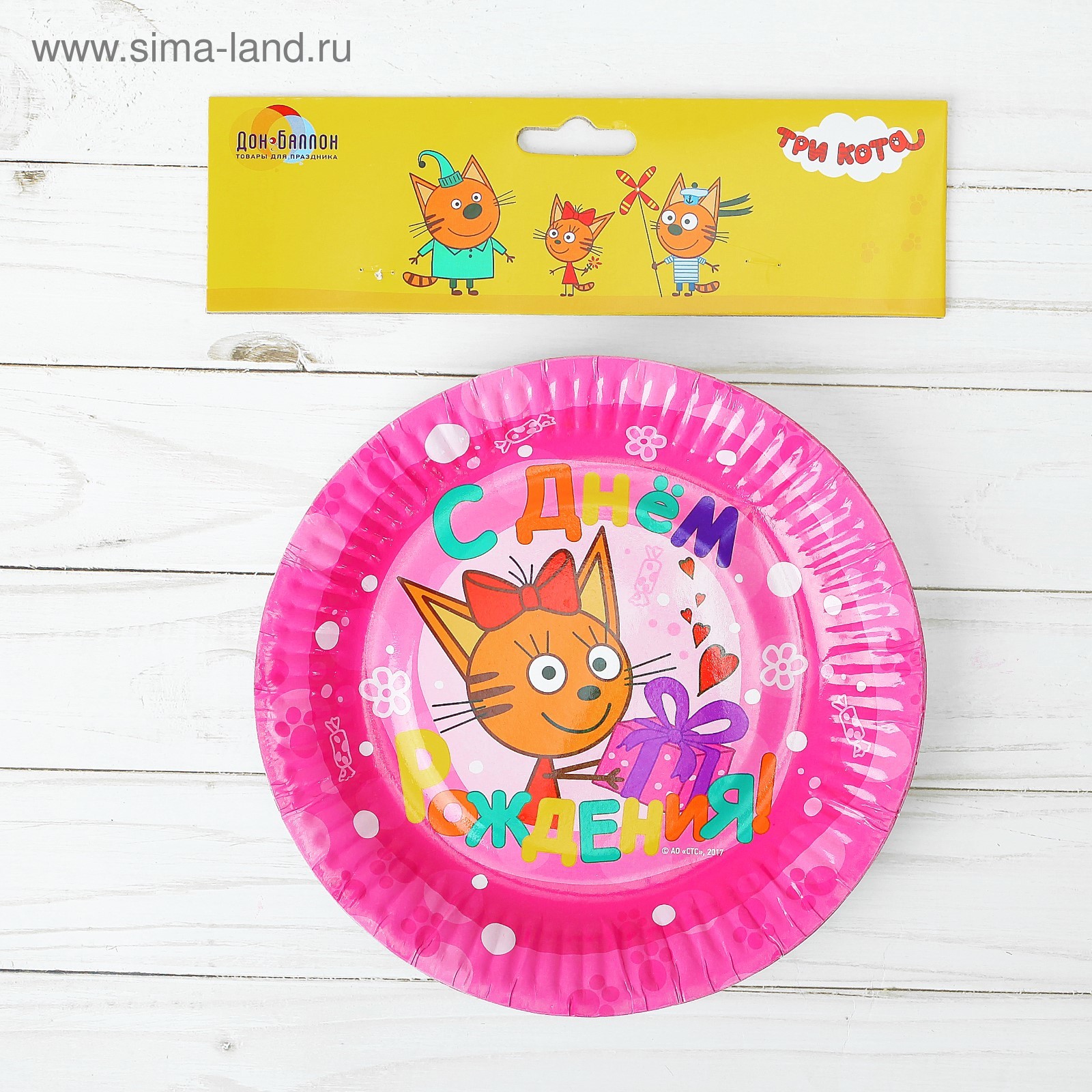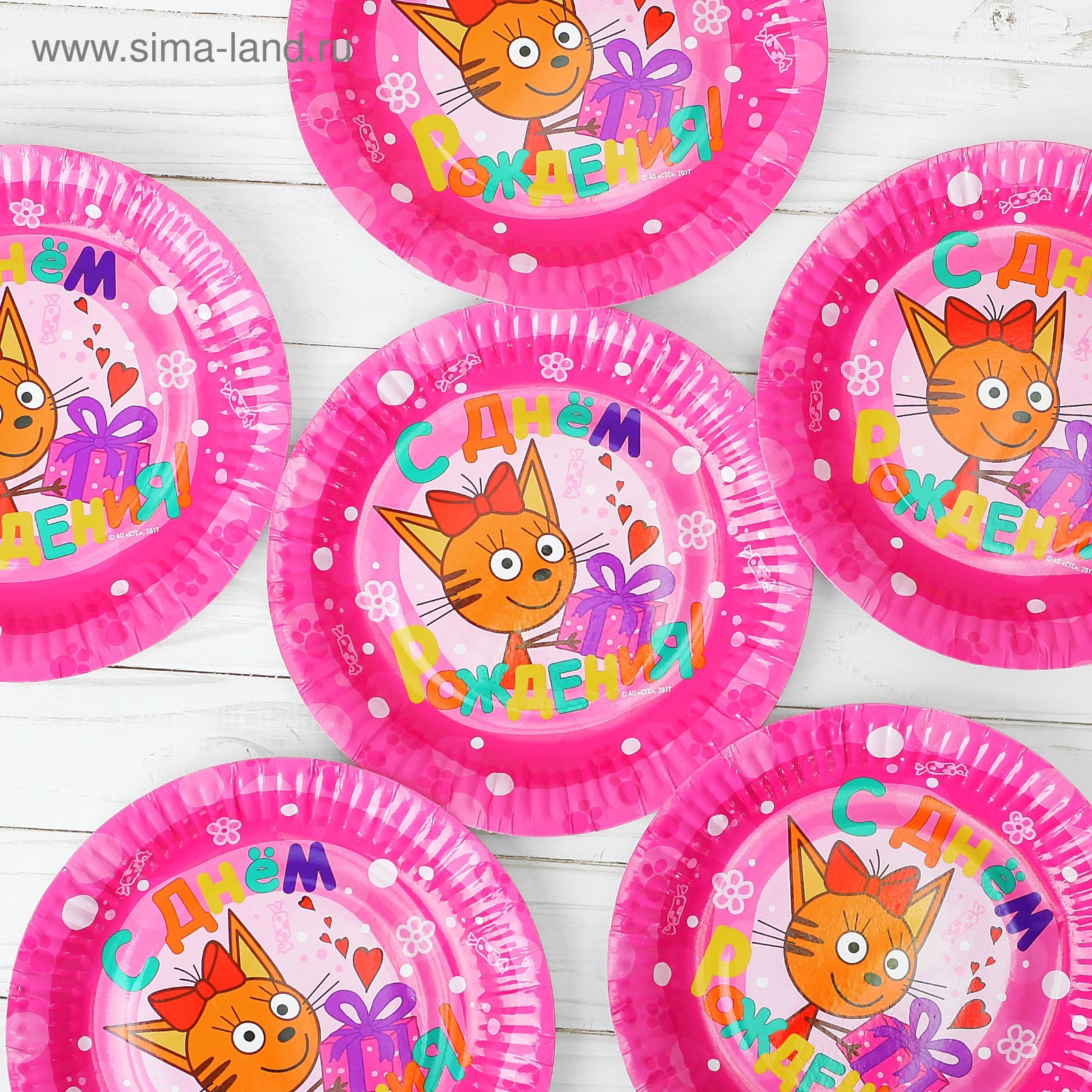 Тарелка бумажная «три кота», 6 шт., 17 см, цвет розовый