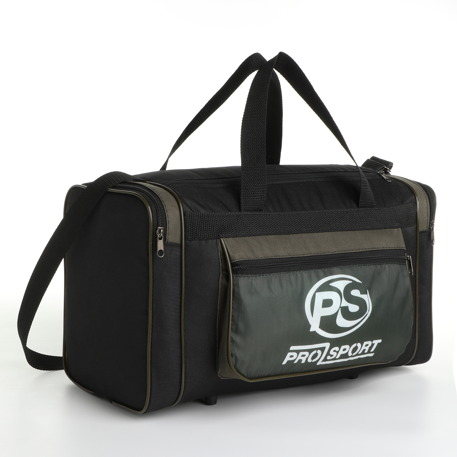 Сумка спортивная мужская на молнии, 3 наружных кармана, средний размер, цвет чёрный/зелёный