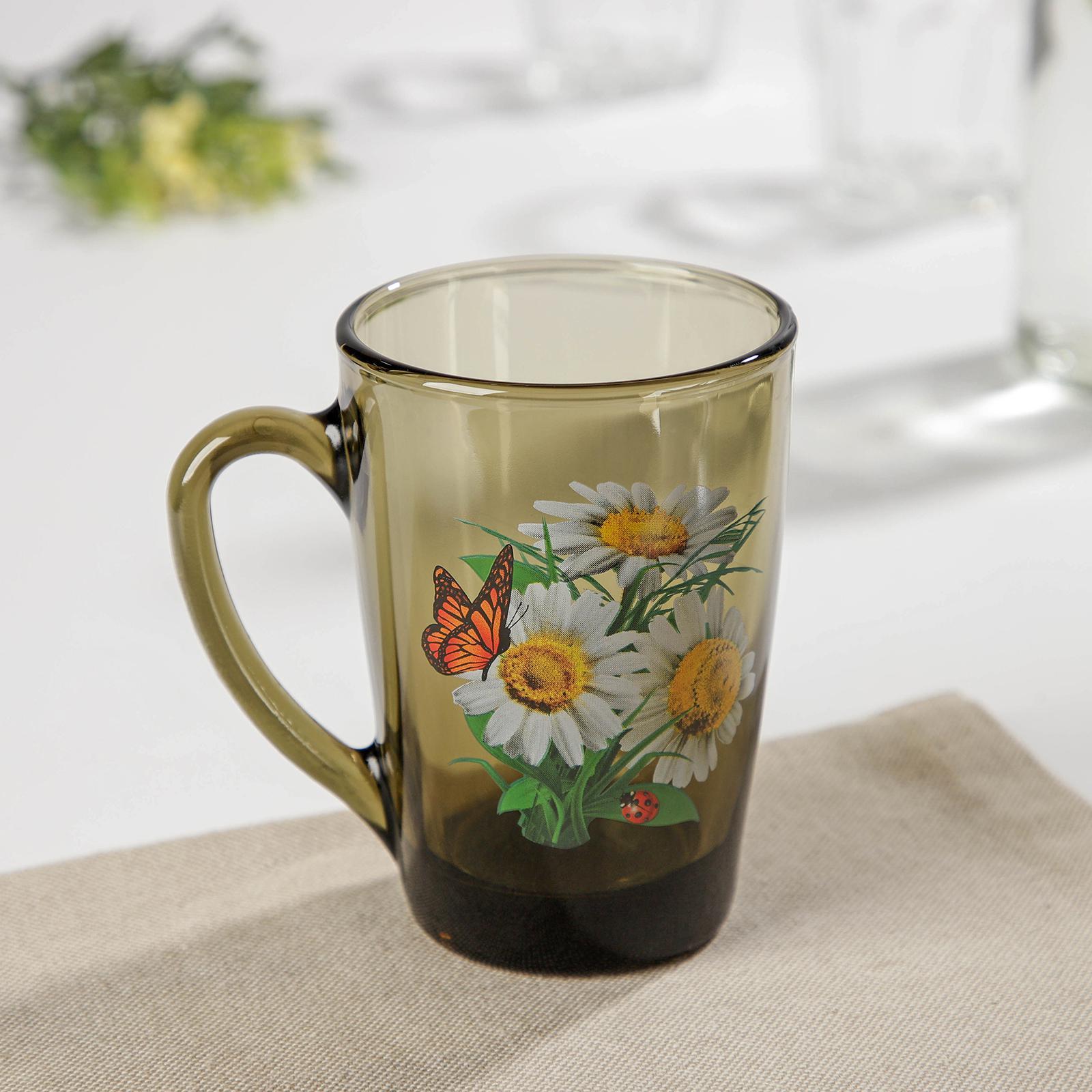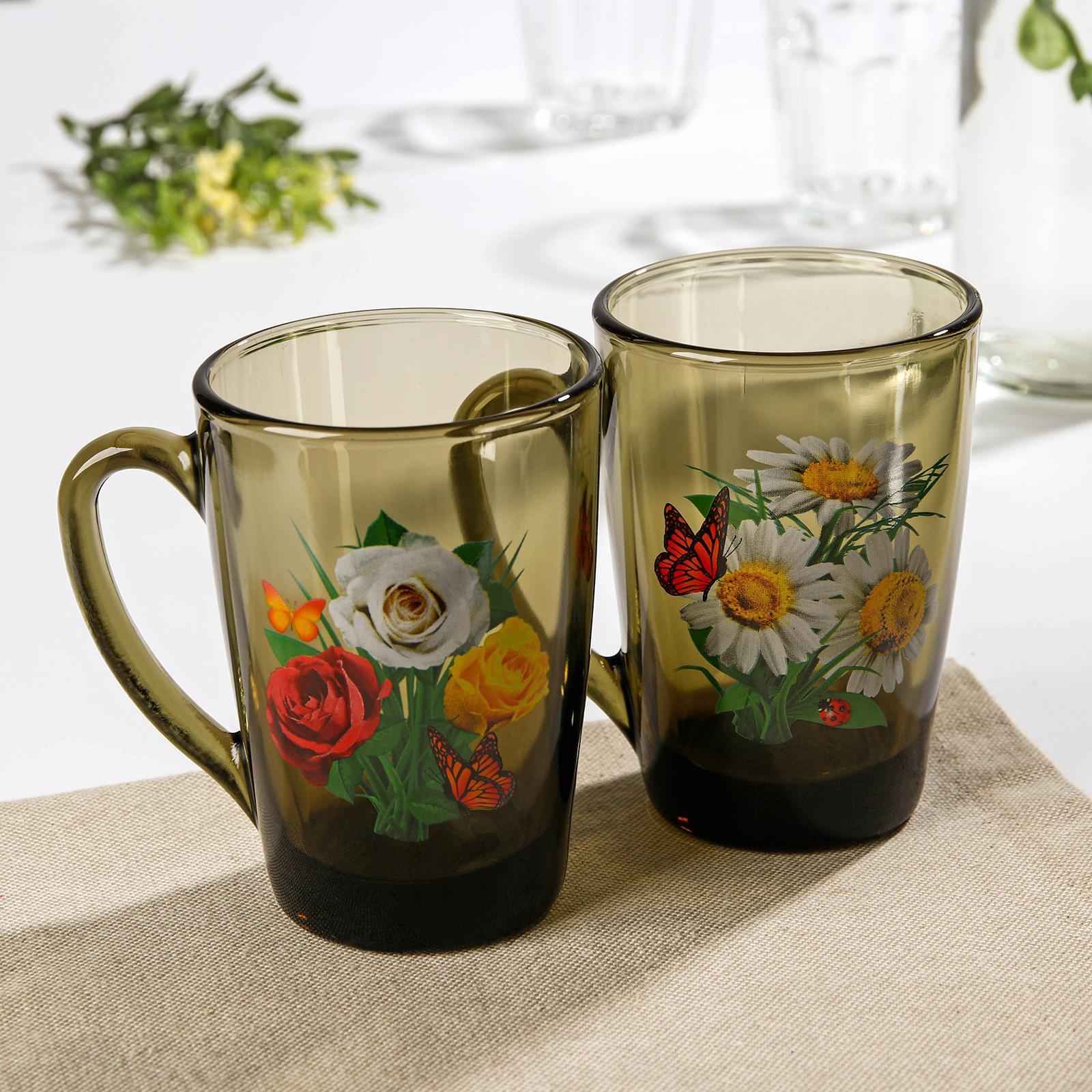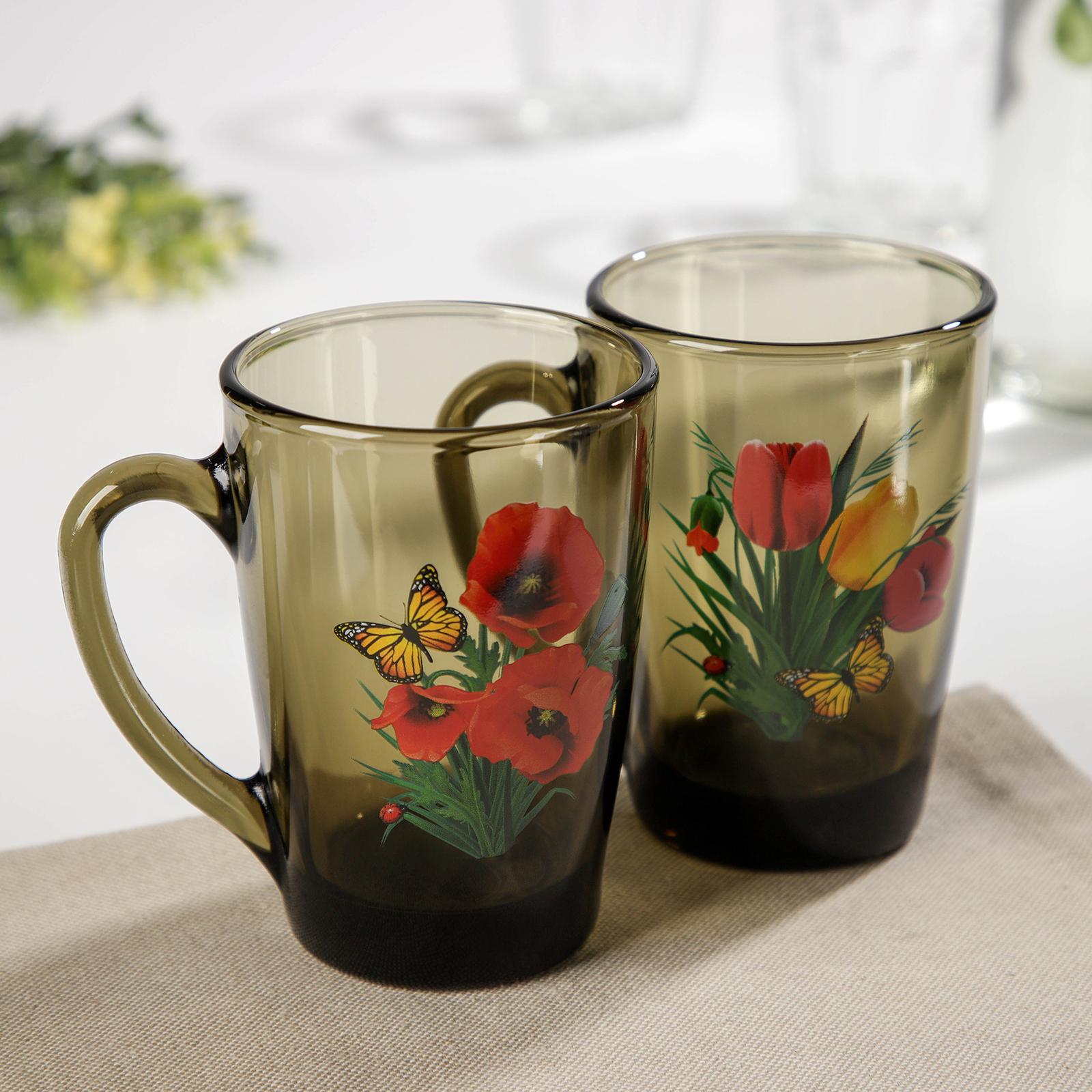 Кружка стеклянная «букеты», 300 мл, цвет микс