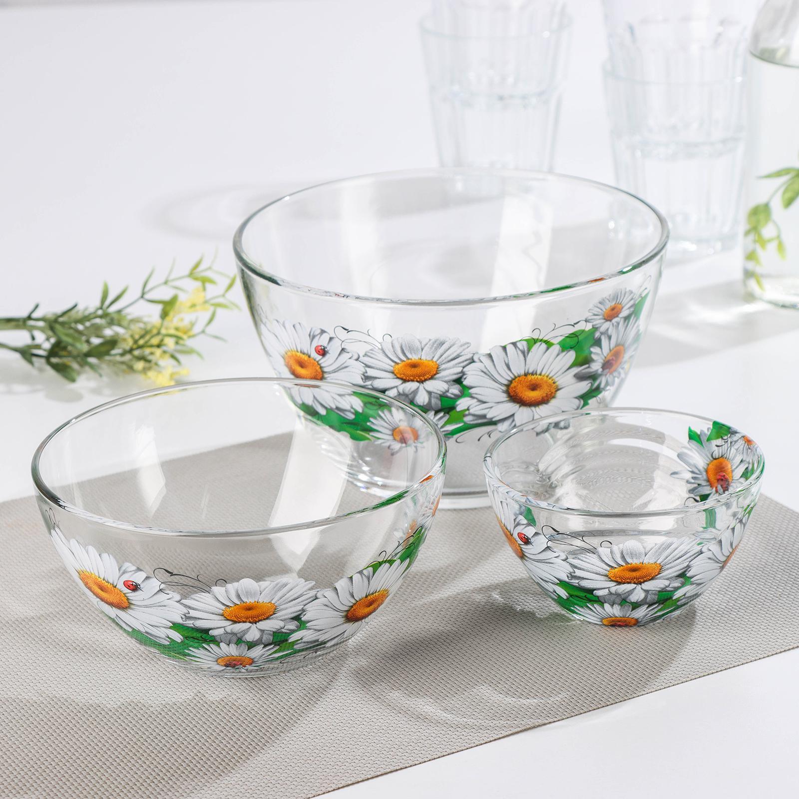 Набор салатников «цветник», 3 шт: 215 мл, D=11 см; 450 мл, D=15,8 см; 925 мл, D=18,8 см, микс