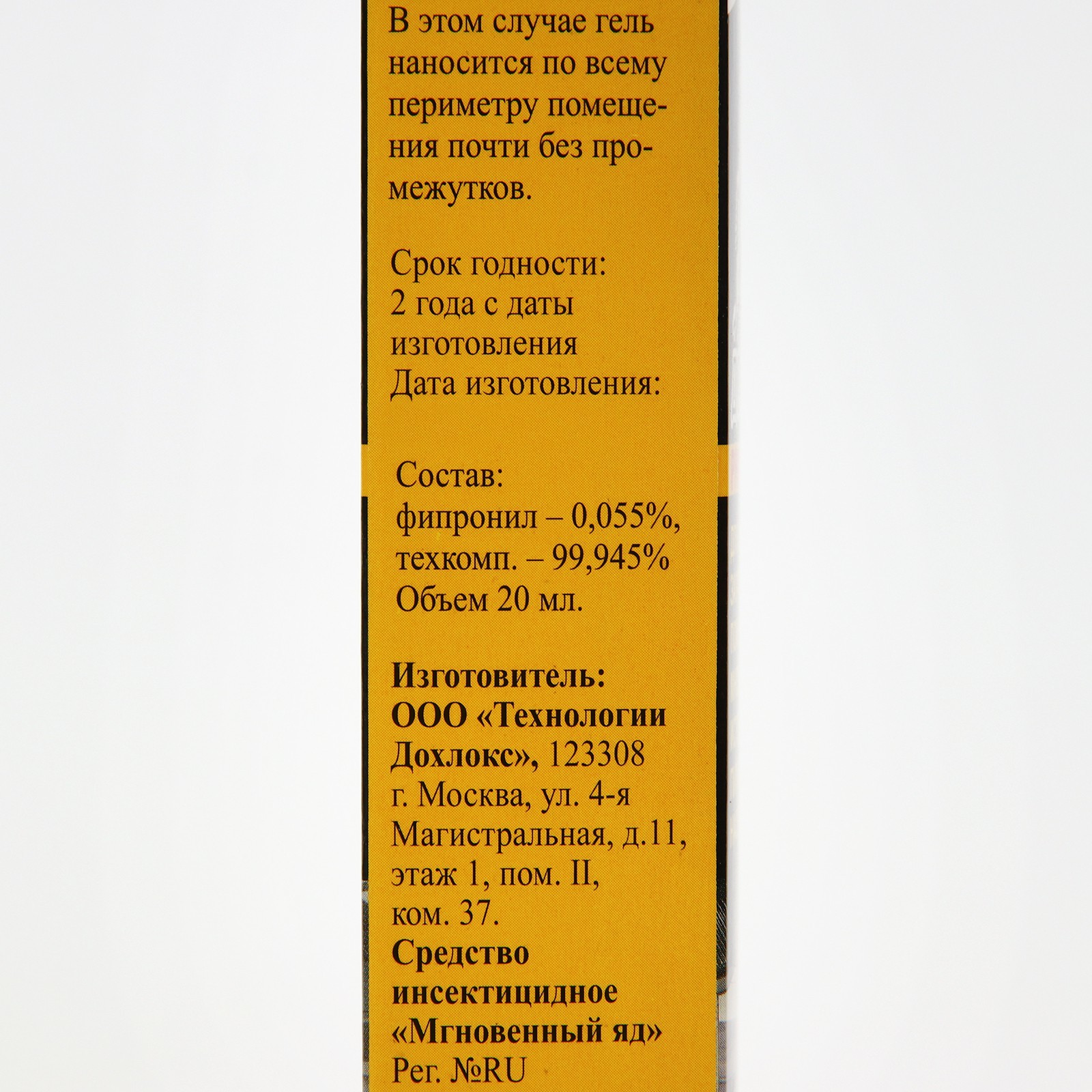 Гель от тараканов дохлокс "мгновенный яд", шприц, 20 мл