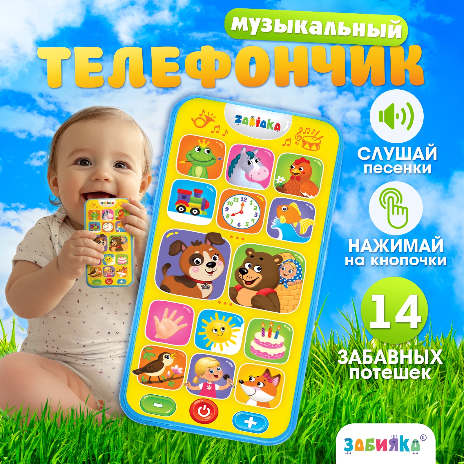 Музыкальный телефон «потешки для малыша», звуковые эффекты, работает от батареек