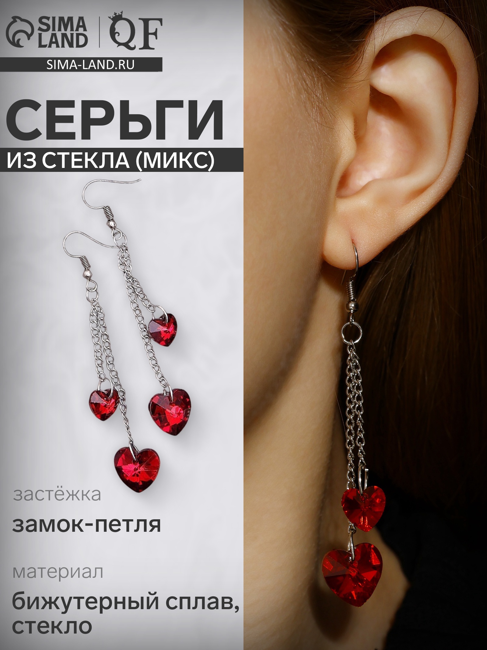 Серьги из стекла «яркий день» сердце, миксы