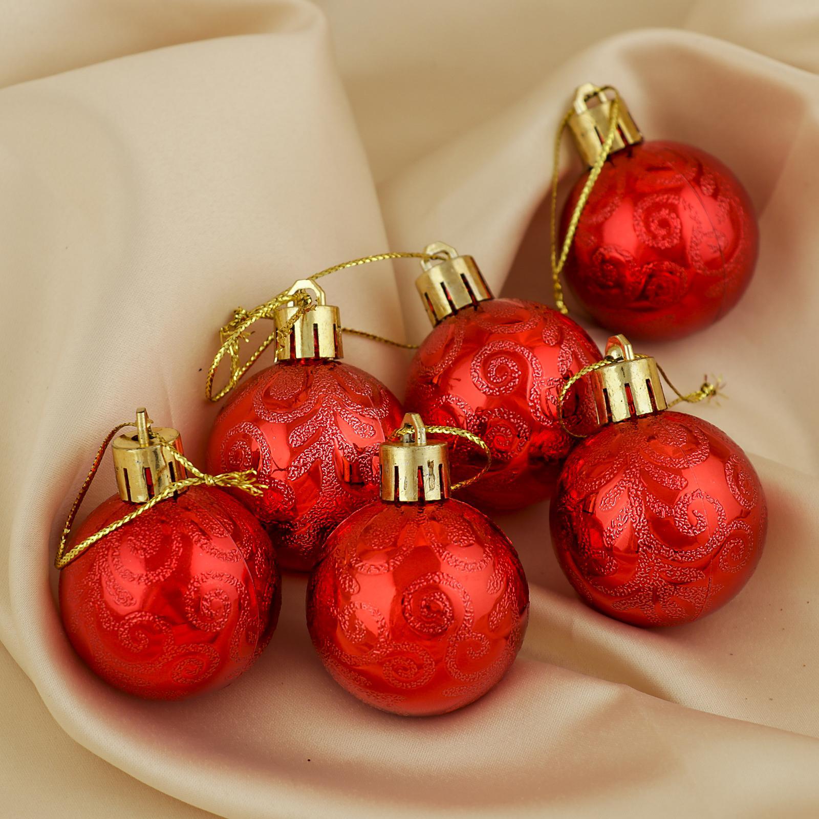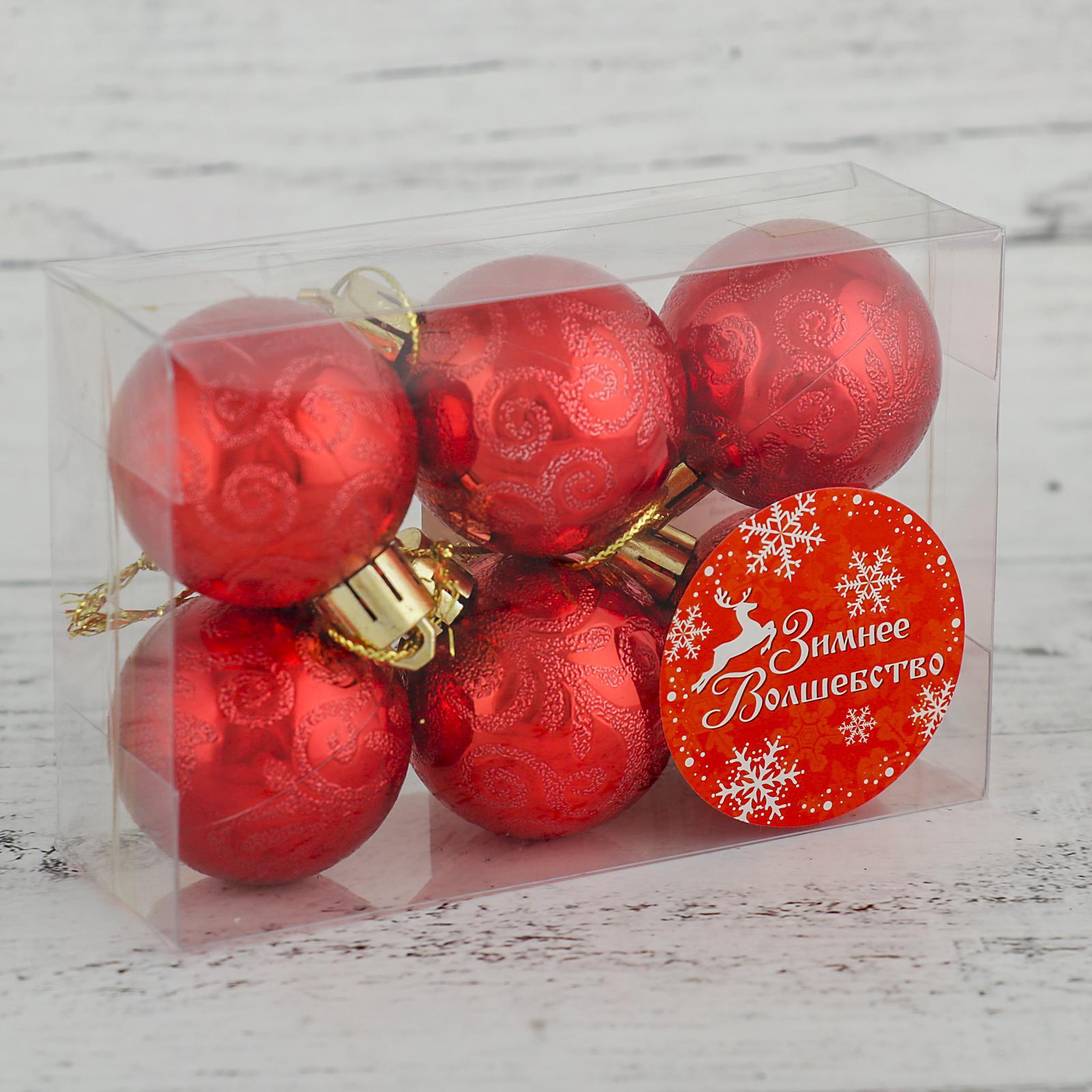 Ёлочные игрушки «морозная зима», шары новогодние, D=4 см, набор 6 шт., красный
