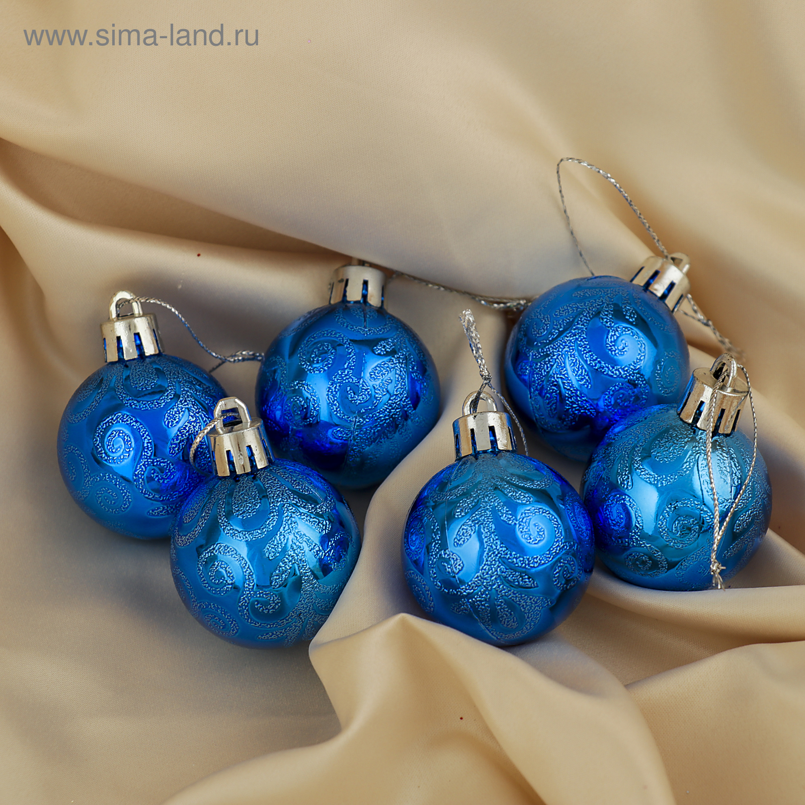 Ёлочные игрушки «морозная зима», шары новогодние, D=4 см, набор 6 шт., синий