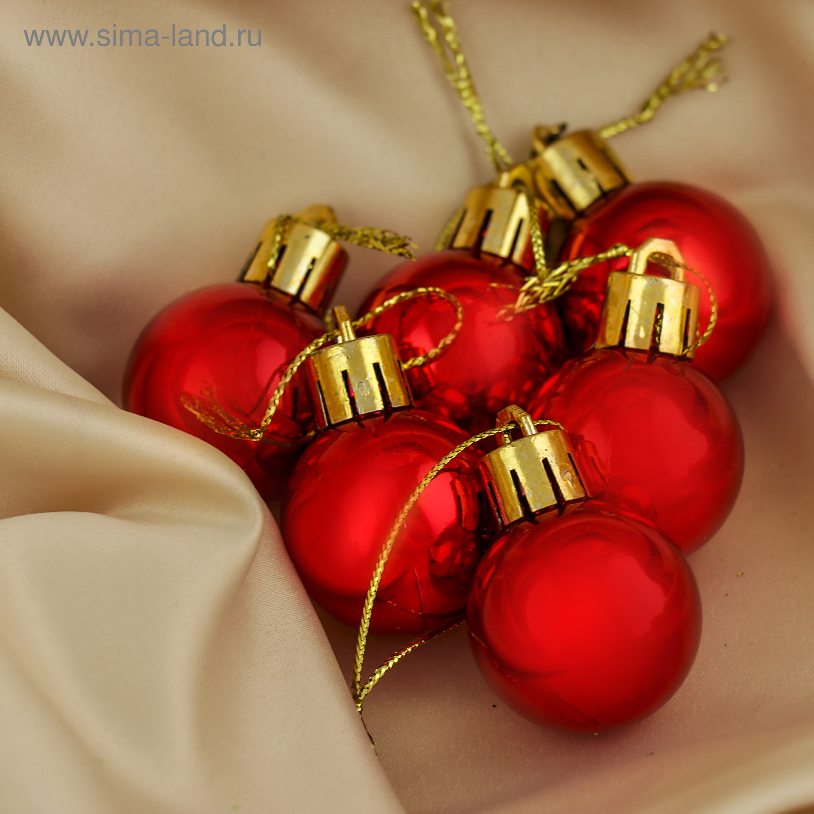 Ёлочные игрушки «глянец», шары новогодние, D=3 см, набор 6 шт., красный