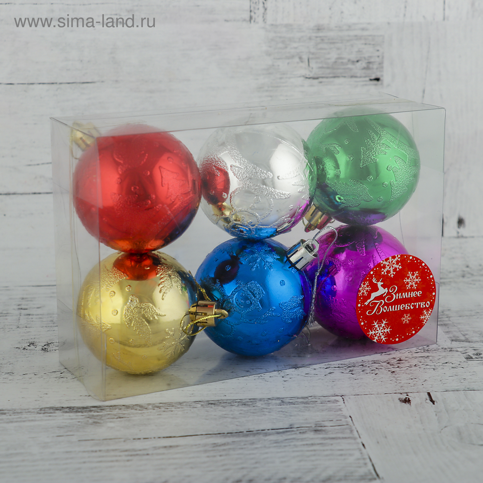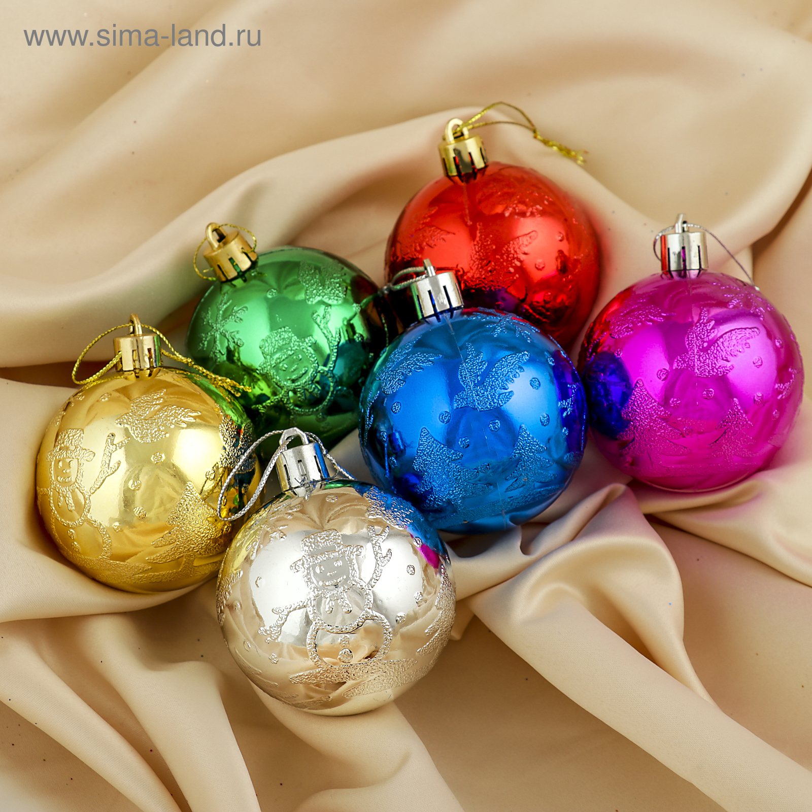 Ёлочные игрушки «снеговичок», шары новогодние, D=6 см, набор 6 шт., микс