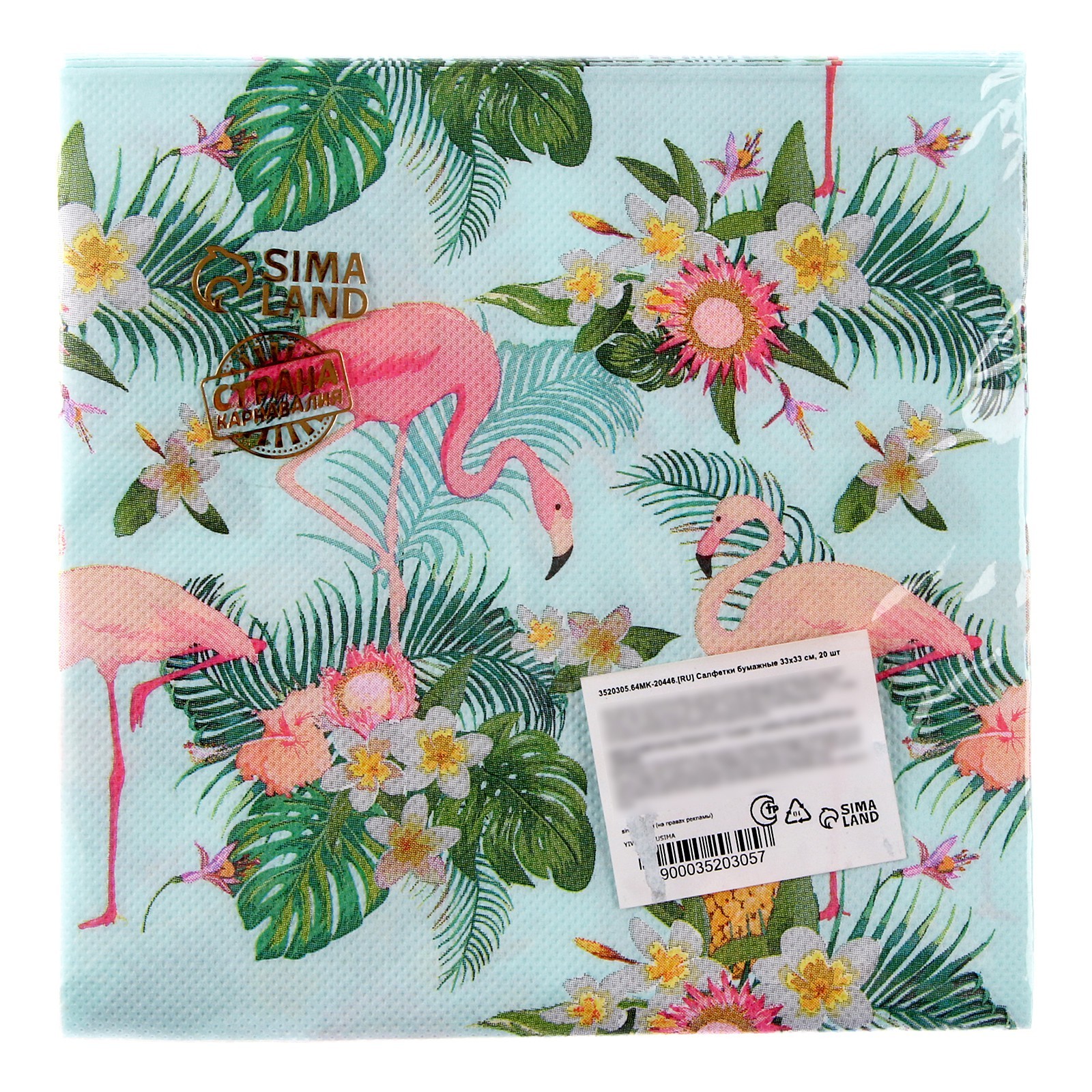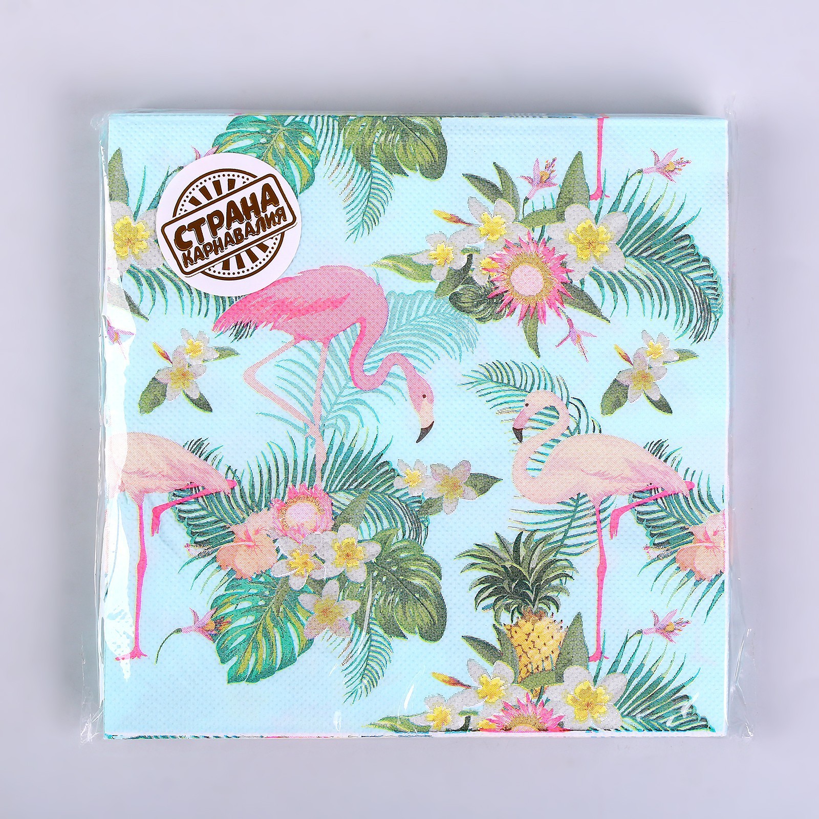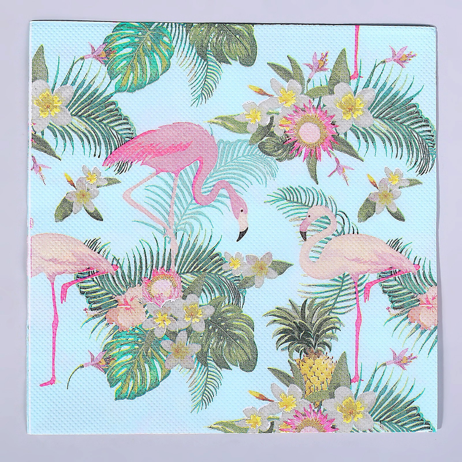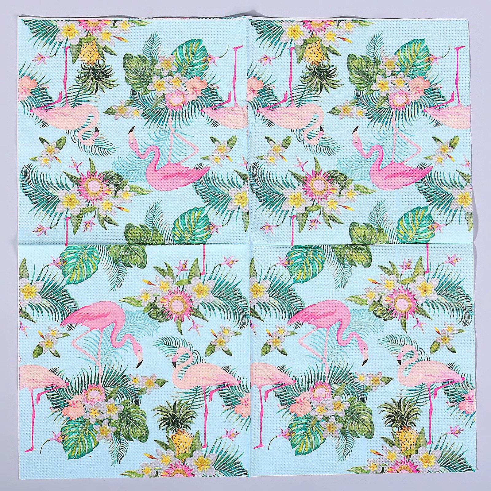 Салфетки бумажные «фламинго с цветами», 33х33 см, набор 20 шт.