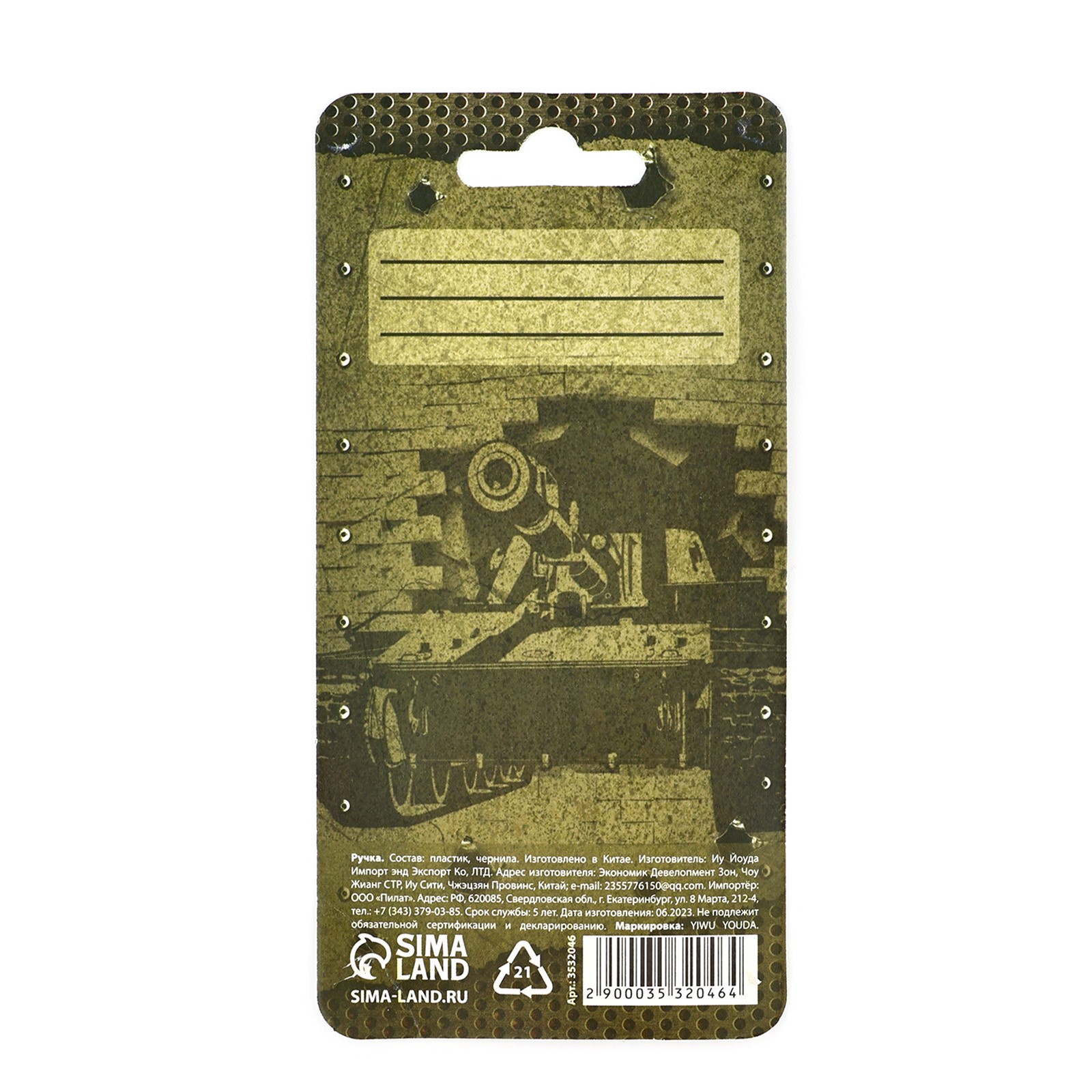 Ручка прикол, гелевая, синяя паста «танк: настоящему мужику» на подложке