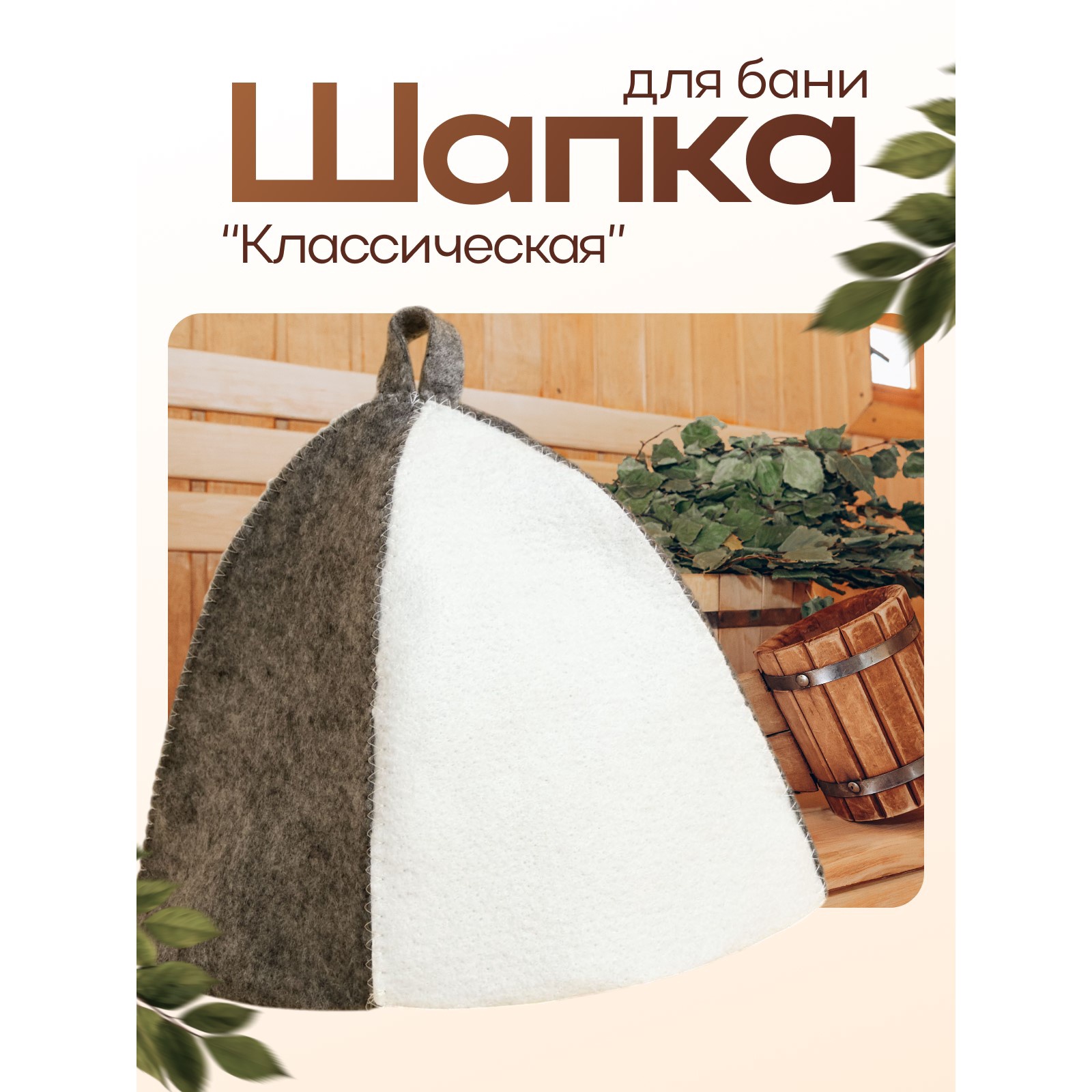 Шапка для бани и сауны, «классическая», полиэфир 70%, шерсть 30%, комбинированная, белая, серая, «добропаровъ»