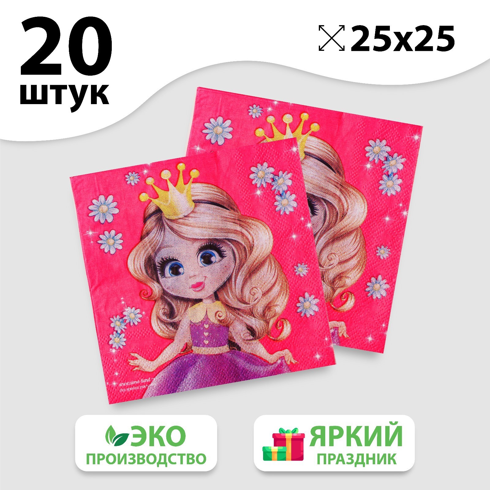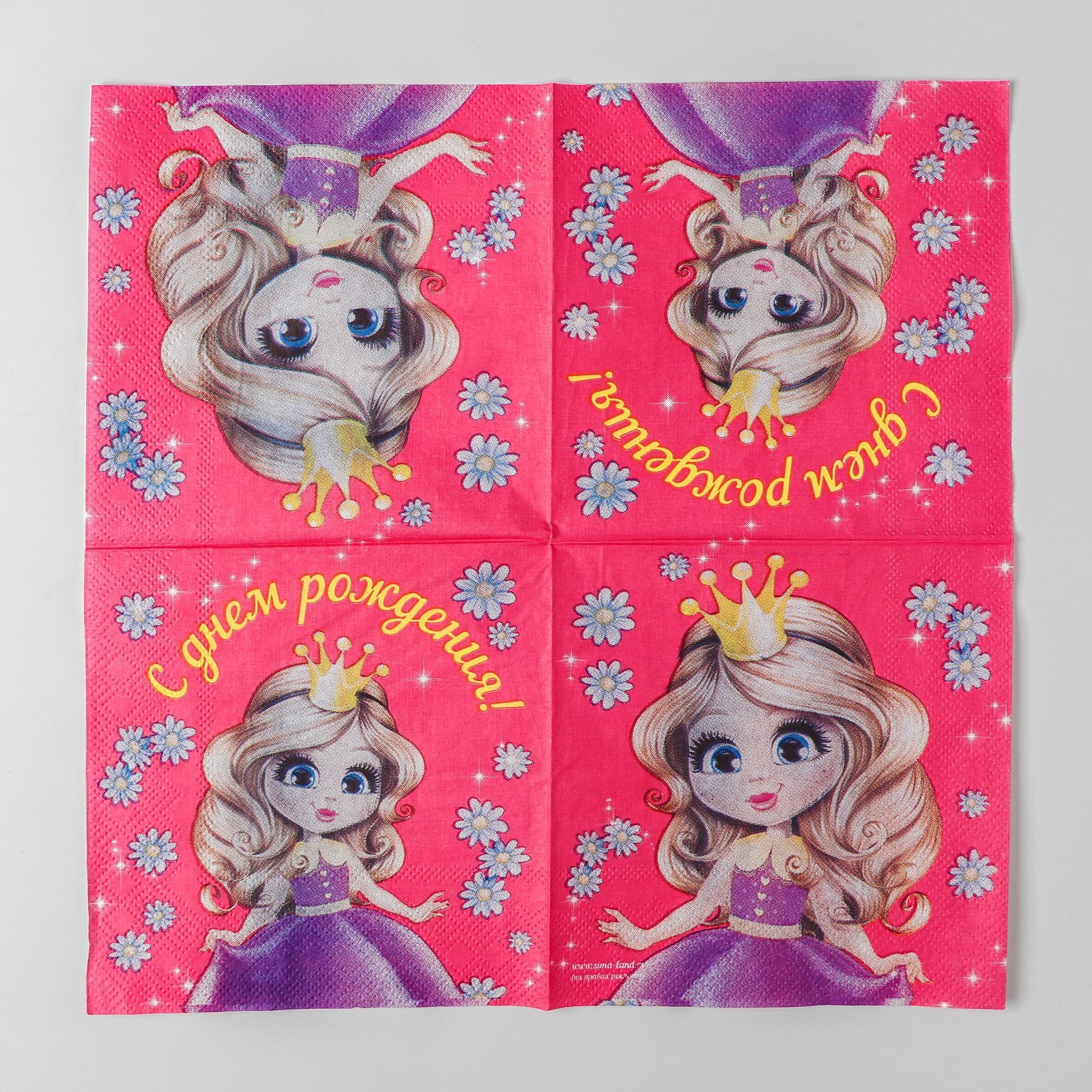 Салфетка «с днём рождения», принцесса, 25х25 см, набор 20 шт.