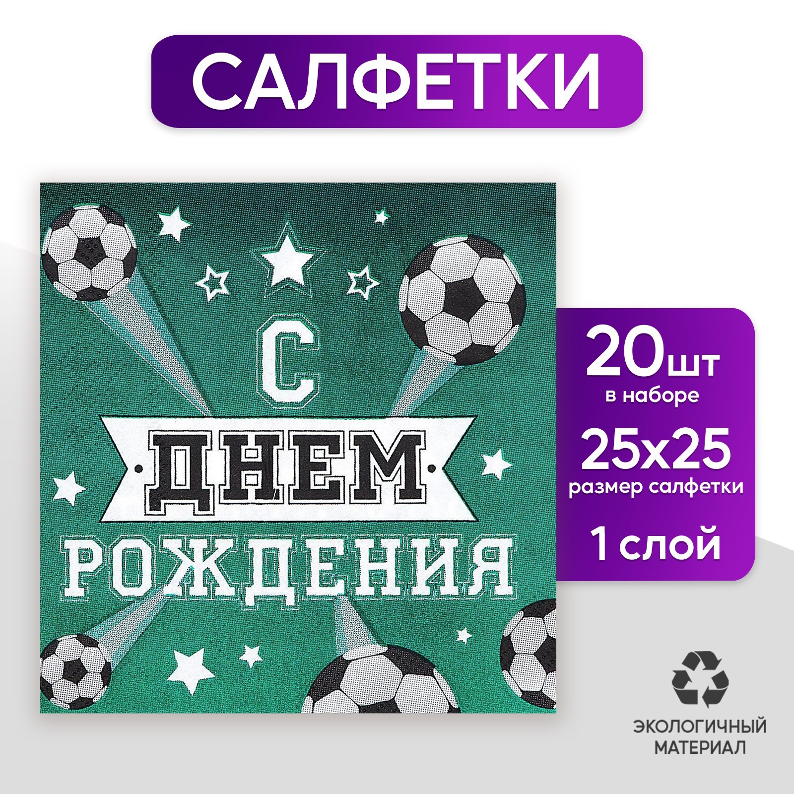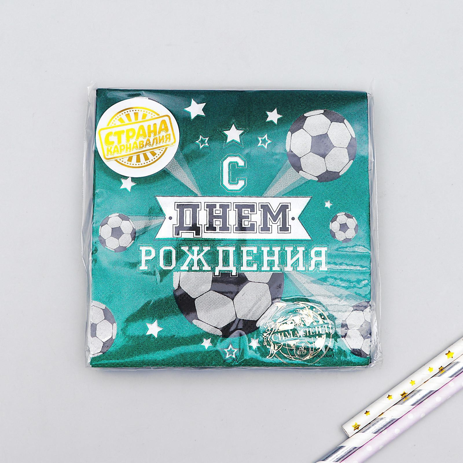 Салфетки бумажные «с днём рождения», футболист, 25х25 см, набор 20 шт.