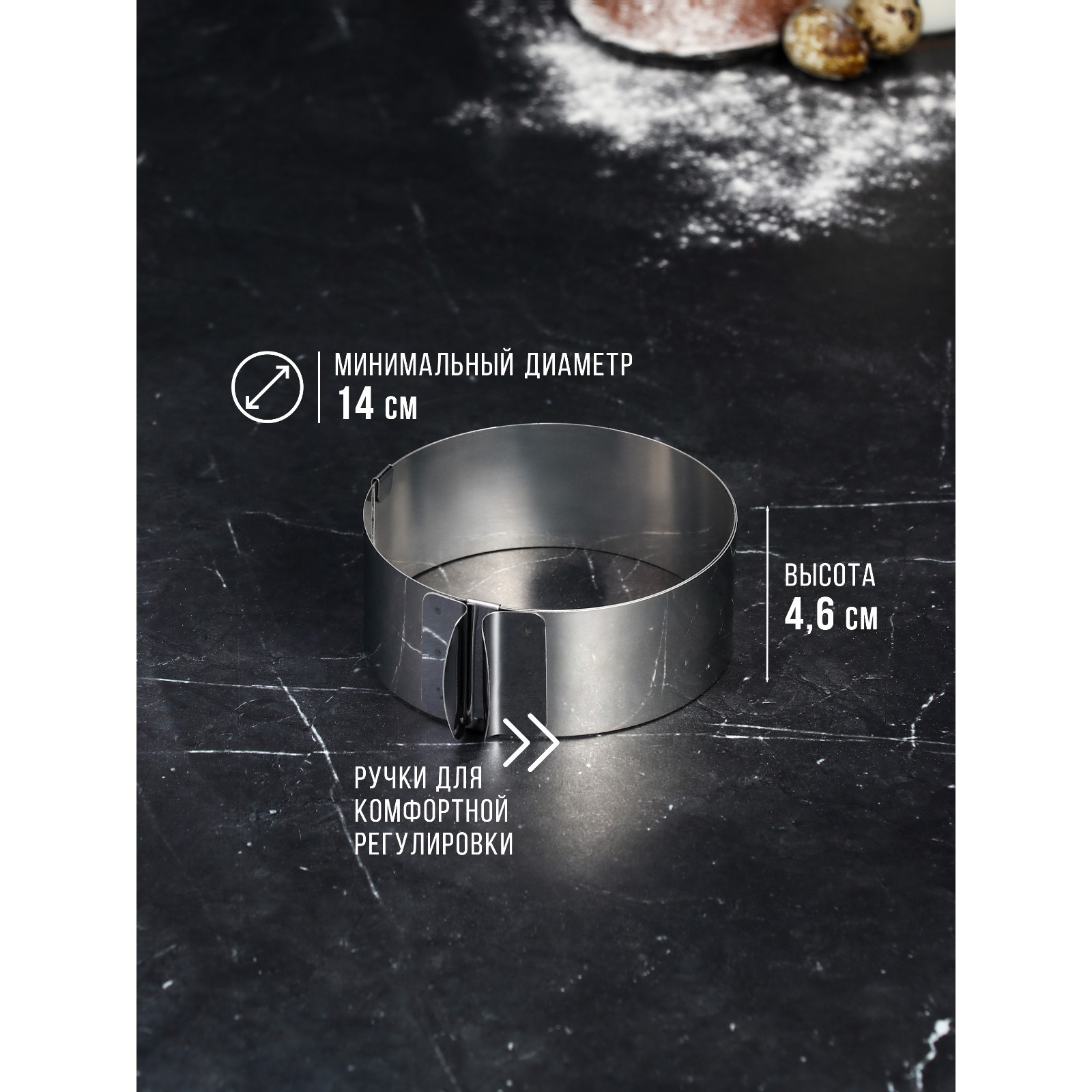 Форма для выпечки и выкладки с регулировкой размера «круг», H-4,6 см, D-14-20 см