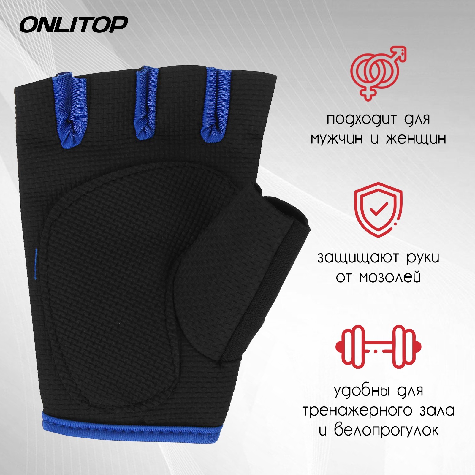 Перчатки спортивные Onlytop, р. м, цвет чёрный/синий