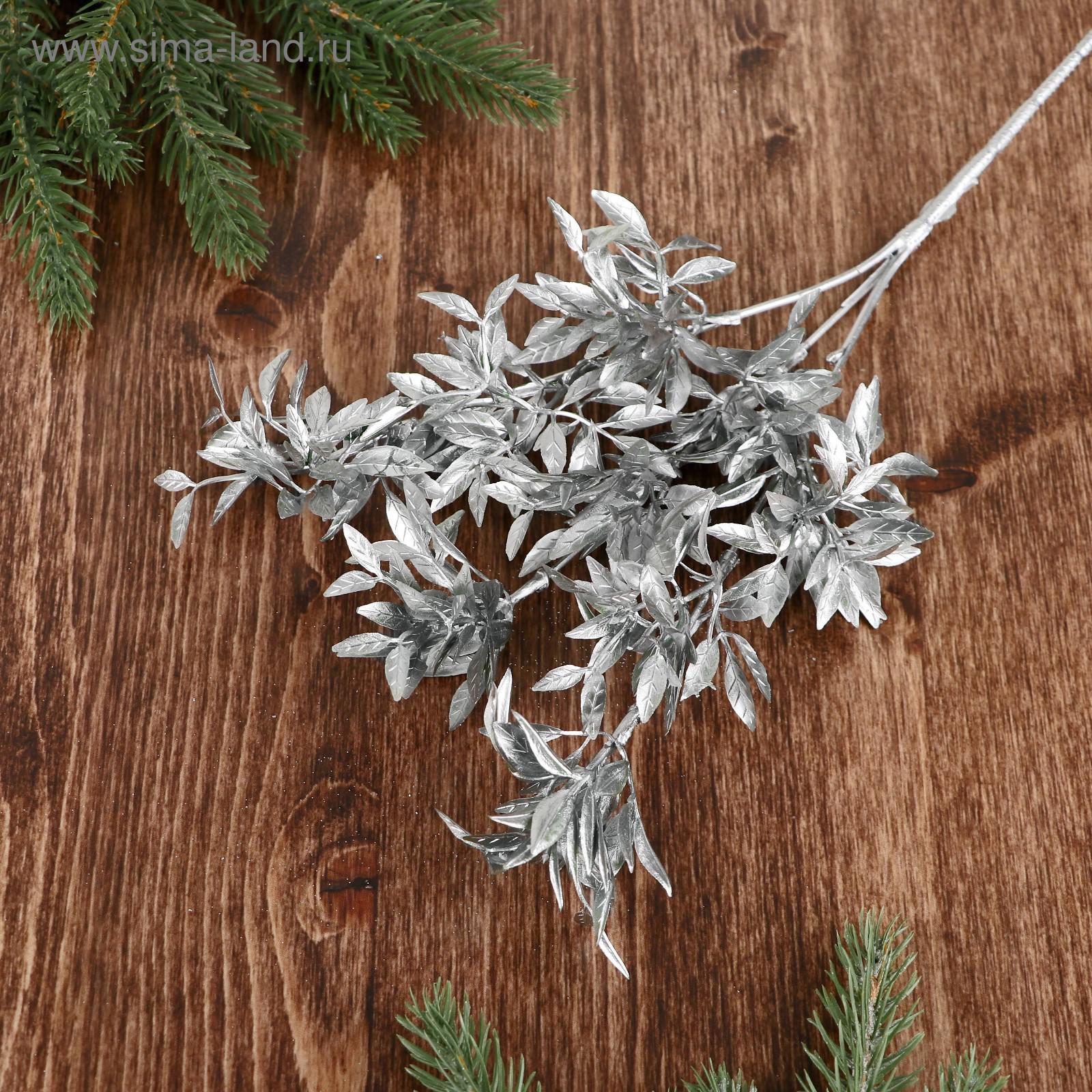 Цветы искусственные блеск «лавровый куст», H=30 см, серебро