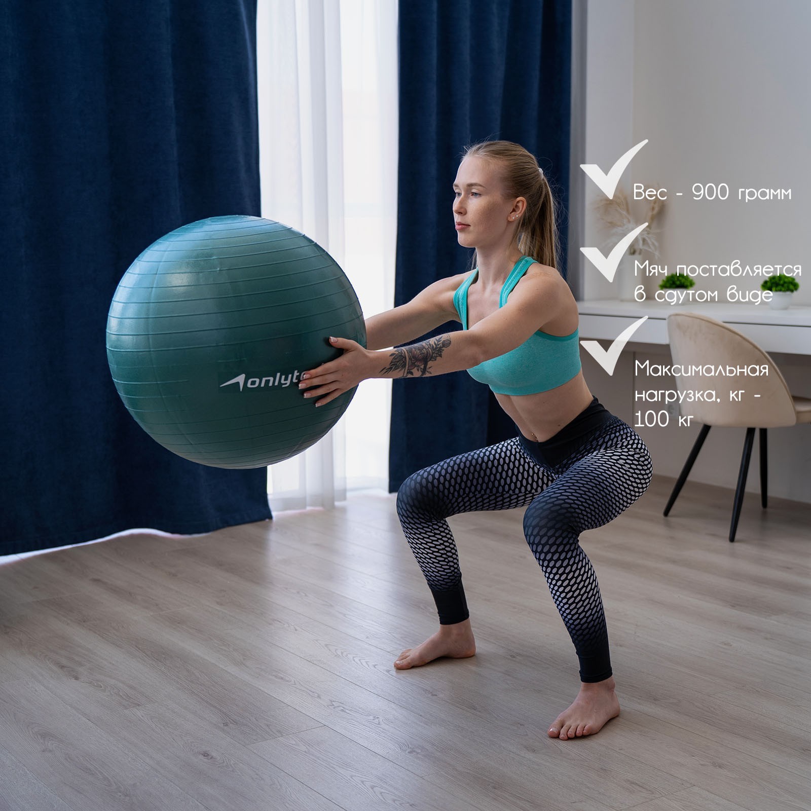 Фитбол onlytop, d=65 см, 900 г, антивзрыв, цвет зелёный. Фитбол предназначен для занятий фитнесом или йогой. Подходит для начинающих и опытных спортсменов. Упражнения на мяче способствуют развитию координации, баланса и гибкости. Его можно использовать как для расслабляющей практики после трудного дня, так и для активного тренинга, направленного на сжигание калорий и улучшение физической формы. За счёт занятий с мячом укрепляются мышцы кора, спины, а также улучшается осанка. Гимнастический мяч может использоваться в спортзале, дома или на свежем воздухе для разнообразия тренировок. Поверхность мяча выполнена из противоскользящего материала, что позволяет сосредоточиться на выполнении упражнений без риска. Характеристики Диаметр: 65 см. Максимальная нагрузка: 100 кг. Подойдёт на рост: 155–170 см. Цвет: Зелёный Форма: Круглая Диаметр, см: 65 Наличие насоса: Нет Maксимальная нагрузка, кг: 100 Вес, г: 900 Возраст: Взрослый Массажный: Нет Особенности: Антивзрыв  развернуть описание ▼