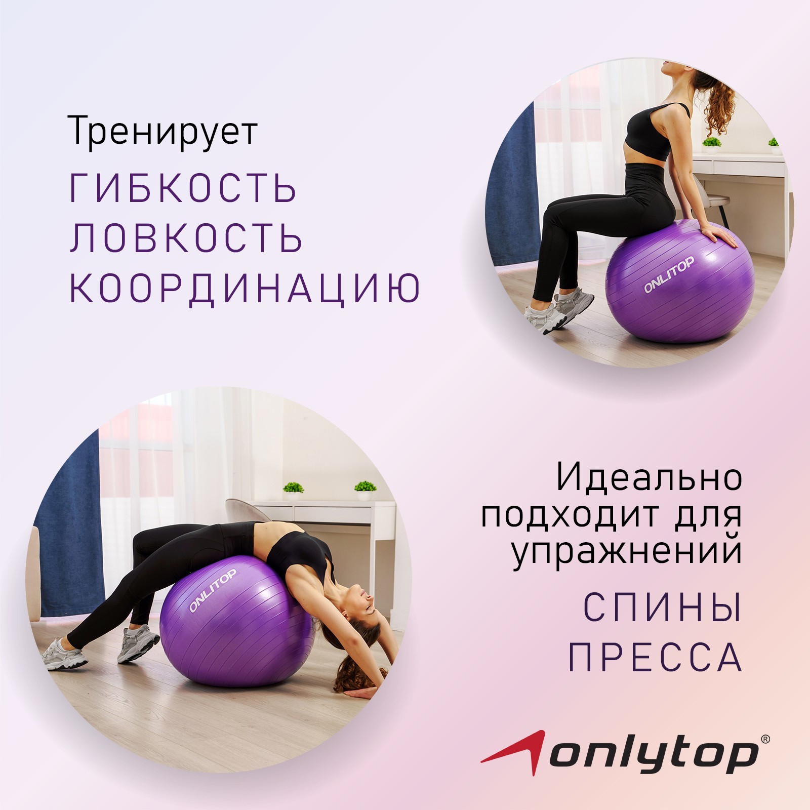 Фитбол onlytop, d=75 см, 1000 г, антивзрыв, цвет фиолетовый. Фитбол предназначен для занятий фитнесом или йогой. Подходит для начинающих и опытных спортсменов. Упражнения на мяче способствуют развитию координации, баланса и гибкости. Его можно использовать как для расслабляющей практики после трудного дня, так и для активного тренинга, направленного на сжигание калорий и улучшение физической формы. За счёт занятий с мячом укрепляются мышцы кора, спины, а также улучшается осанка. Гимнастический мяч может использоваться в спортзале, дома или на свежем воздухе для разнообразия тренировок. Поверхность мяча выполнена из противоскользящего материала, что позволяет сосредоточиться на выполнении упражнений без риска. Характеристики Диаметр: 75 см. Максимальная нагрузка: 100 кг. Подойдёт на рост: 170–185 см. Цвет: Фиолетовый Форма: Круглая Диаметр, см: 75 Наличие насоса: Нет Maксимальная нагрузка, кг: 100 Вес, г: 1000 Возраст: Взрослый Массажный: Нет Особенности: Антивзрыв  развернуть описание ▼