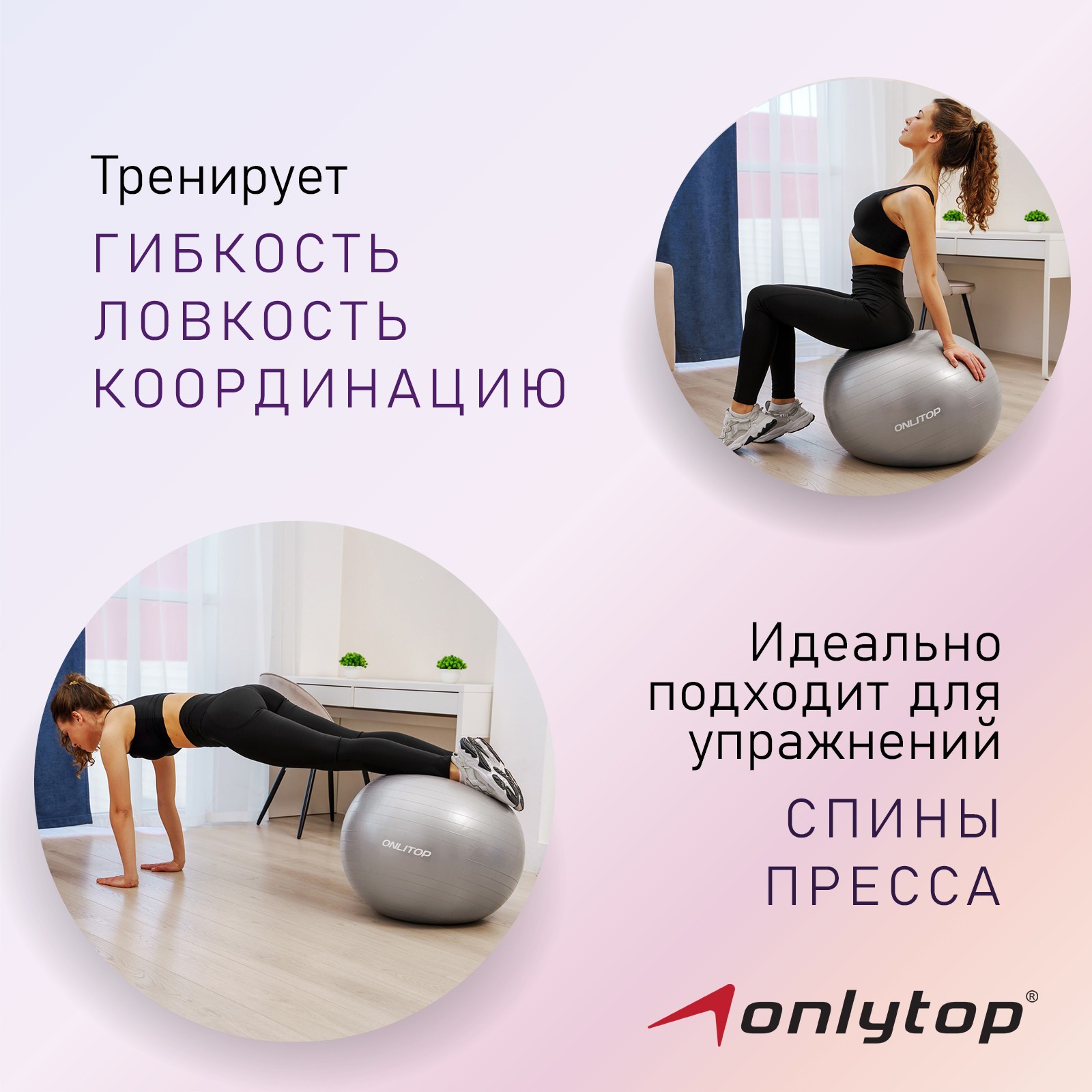 Фитбол onlytop, d=75 см, 1000 г, антивзрыв, цвет серый. Гимнастический мяч предназначен для домашнего фитнеса. Занятия с таким снарядом тренируют координацию, ловкость, гибкость. Также его используют при выполнении упражнений для спины и пресса. Максимальная нагрузка: 100 кг. Цвет: Серый Форма: Круглая Диаметр, см: 75 Наличие насоса: Нет Maксимальная нагрузка, кг: 100 Вес, г: 1000 Возраст: Взрослый Массажный: Нет Особенности: Антивзрыв  развернуть описание ▼