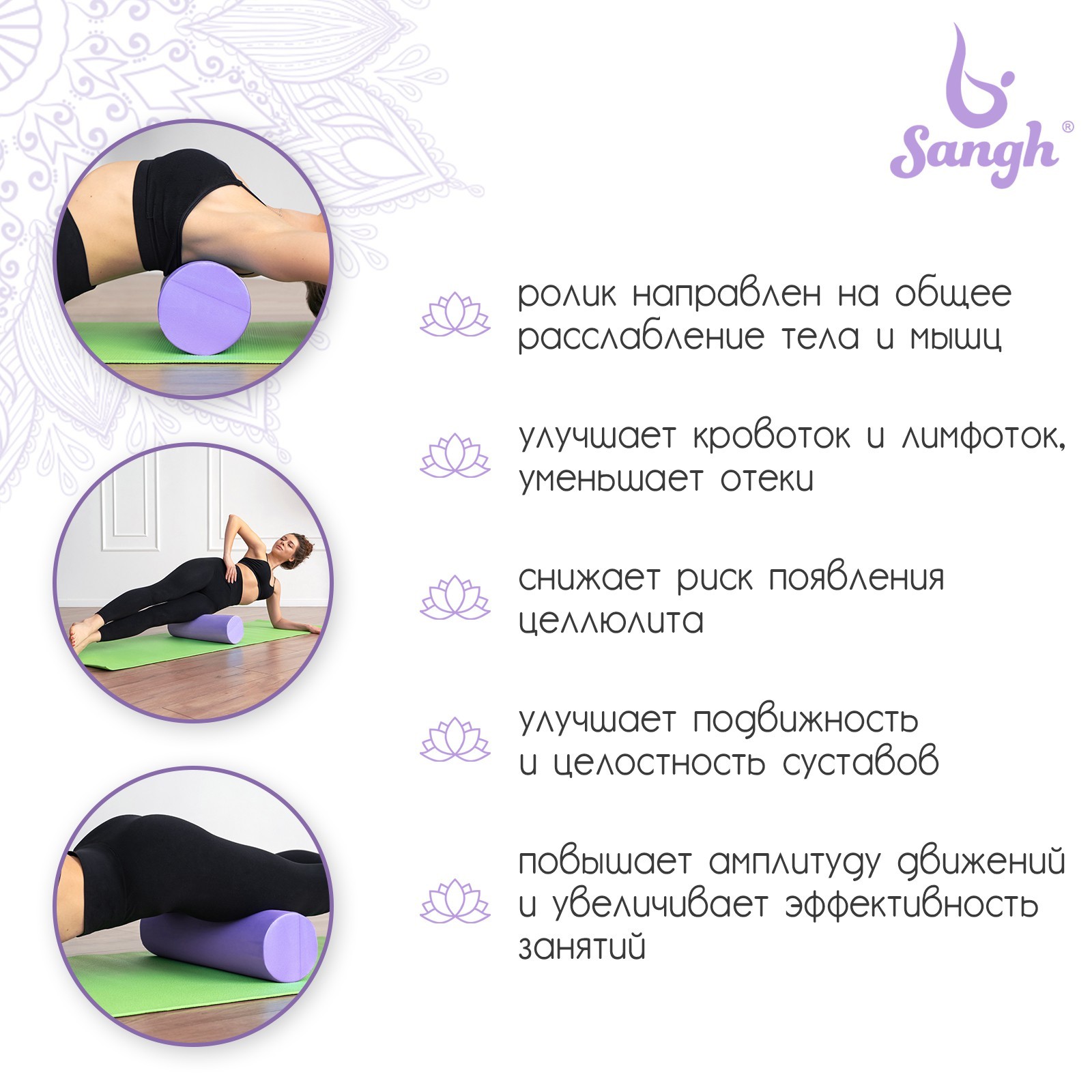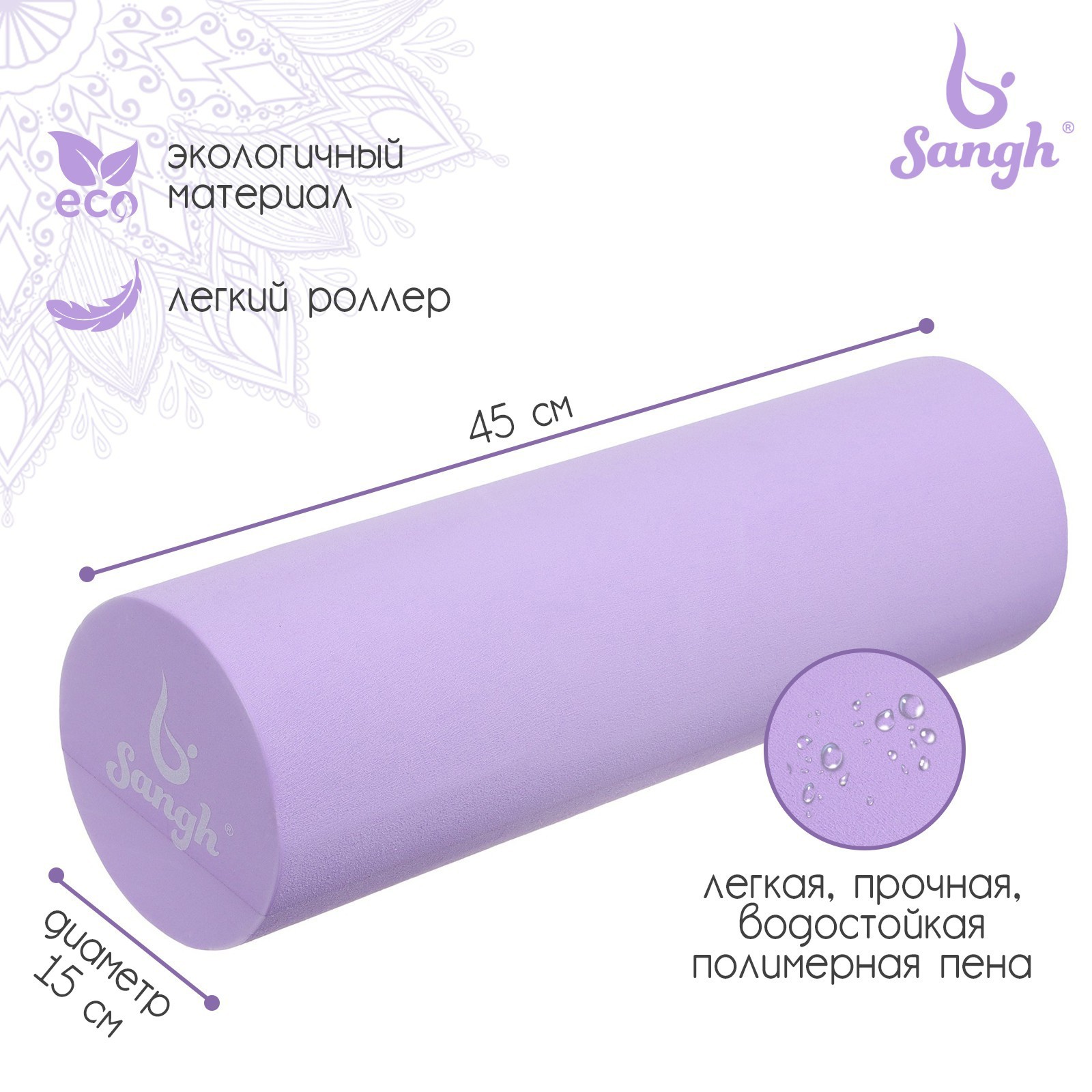 Ролик массажный sangh, 45х15 см, цвет фиолетовый. Роллер для йоги — спортивный инвентарь, который помогает настроить мышцы на работу перед тренировкой, удерживать правильное положение тела во время неё и ослабить боль в мышцах и суставах после. Параллельно способствует восстановлению всего организма. Ролик позволяет практиковать миофасциальное расслабление (МФР). Использование изделия становится доступной альтернативой массажной терапии. Цвет: Фиолетовый Вид: Ролики  развернуть описание ▼