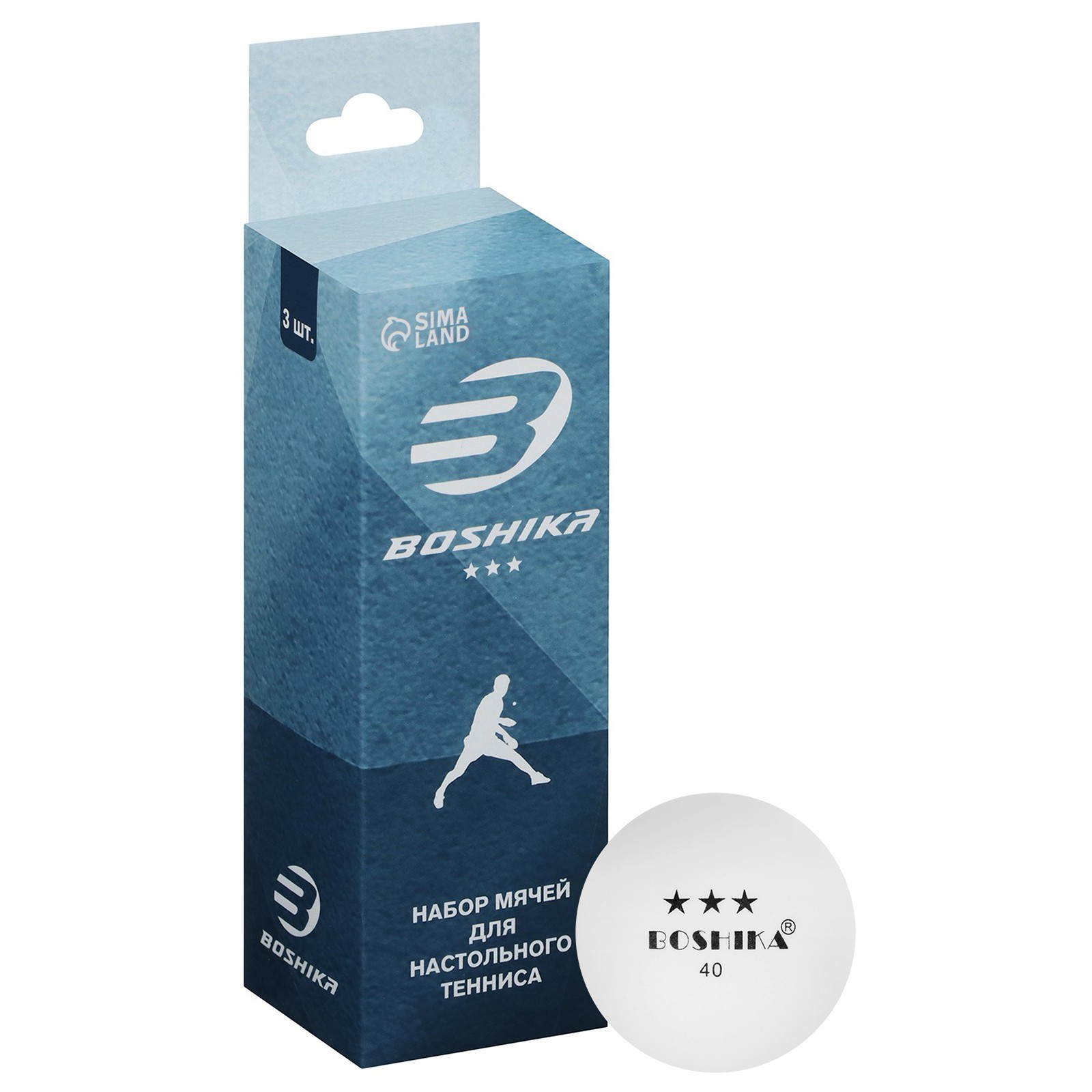 Мяч для настольного тенниса Boshika 3***, набор 3 шт., Abs, цвет белый