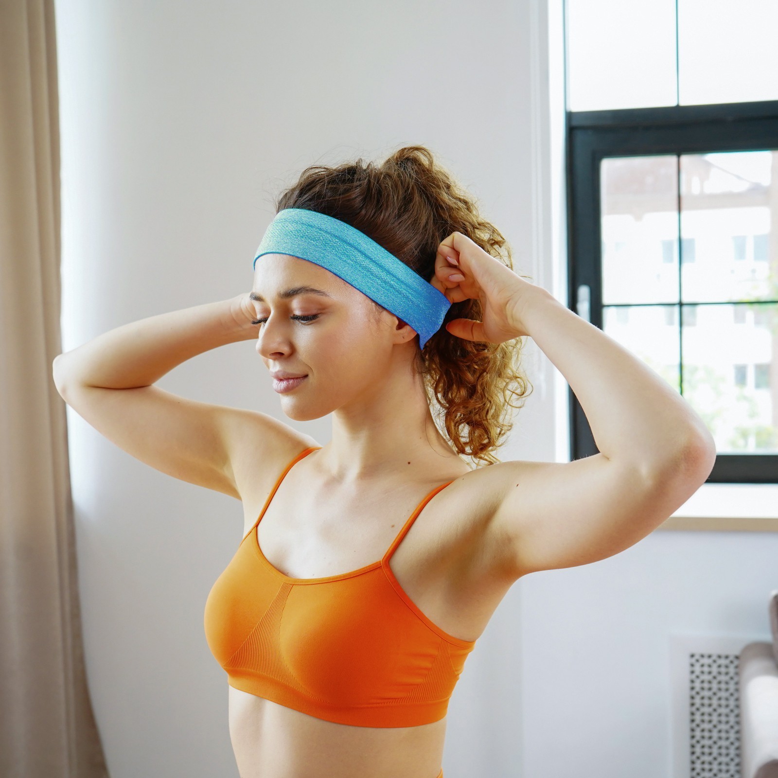 Повязка на голову onlytop, цвет синий. Повязка используется при интенсивных тренировках. Комфортно сидит на голове и не сползает благодаря силиконовым вставкам на внутренней стороне. Впитывает пот и на даёт ему попадать в глаза. Цвет: Синий  развернуть описание ▼
