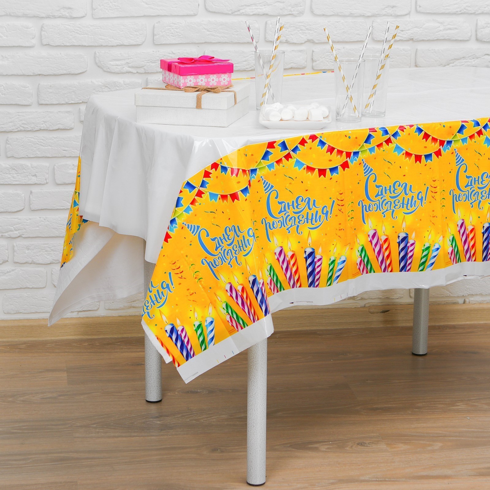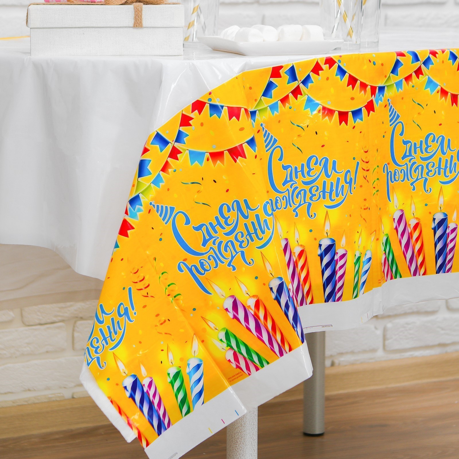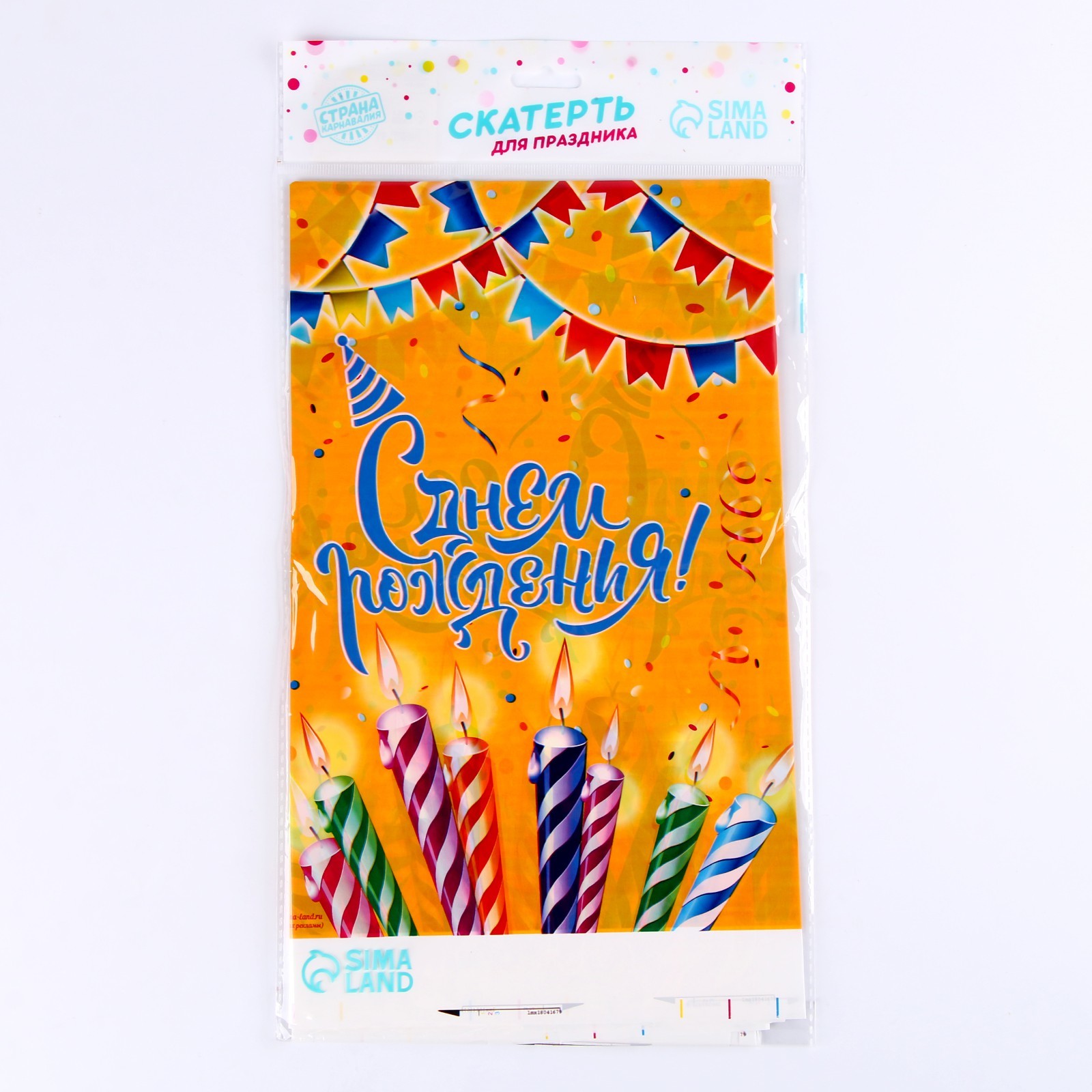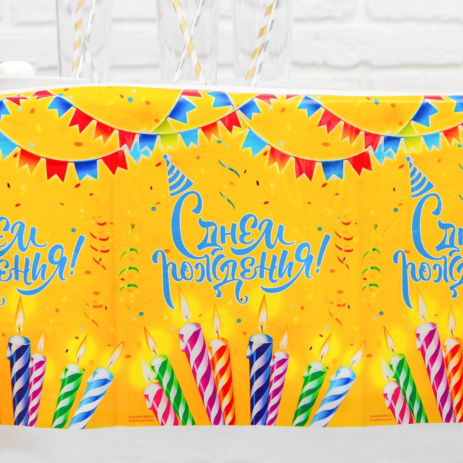 Скатерть одноразовая «с днём рождения», свечи, 180х137см