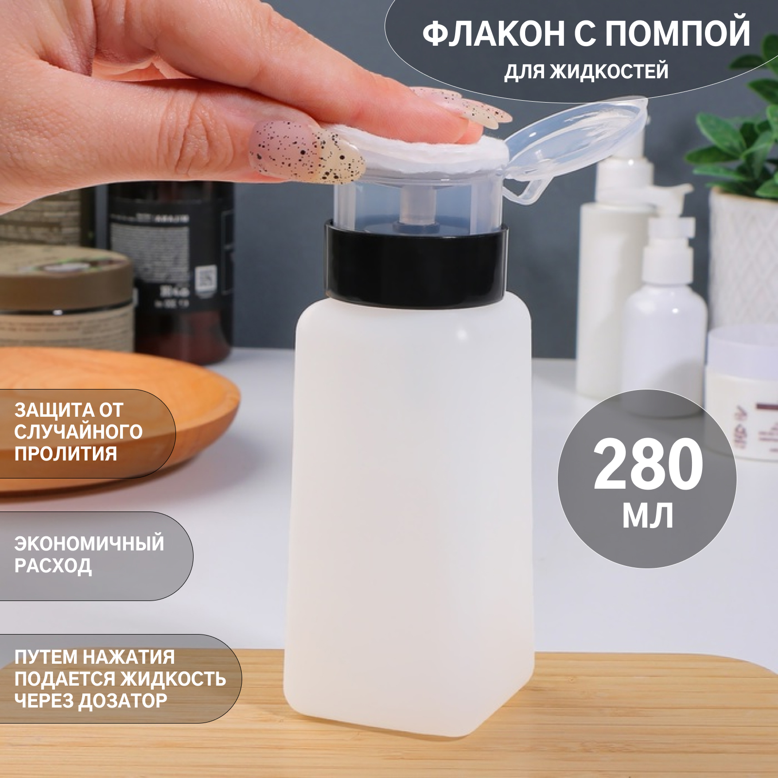Флакон с помпой, 280 мл, белый/чёрный