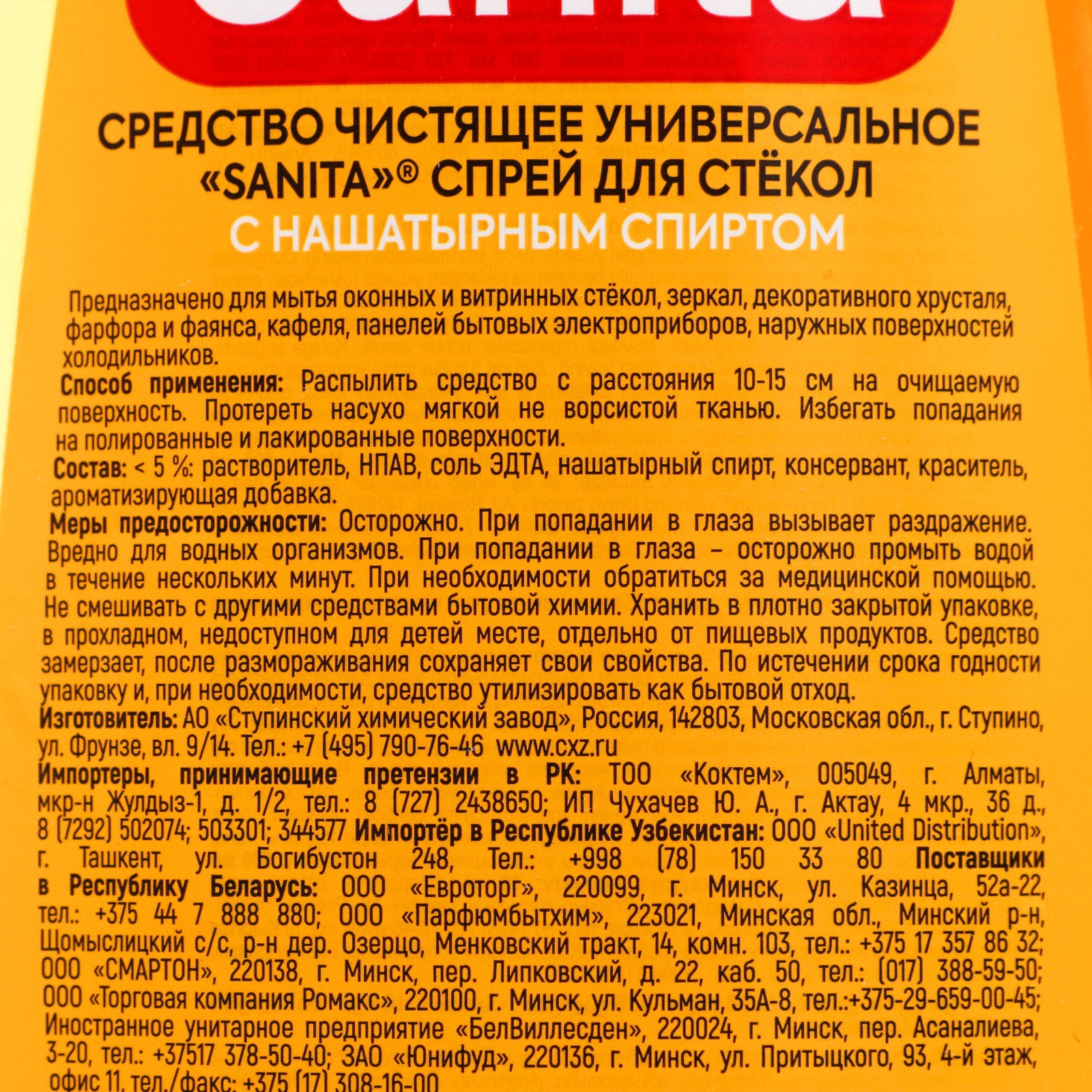 Средство для мытья стёкол и зеркал Sanita, красный апельсин, 500 мл