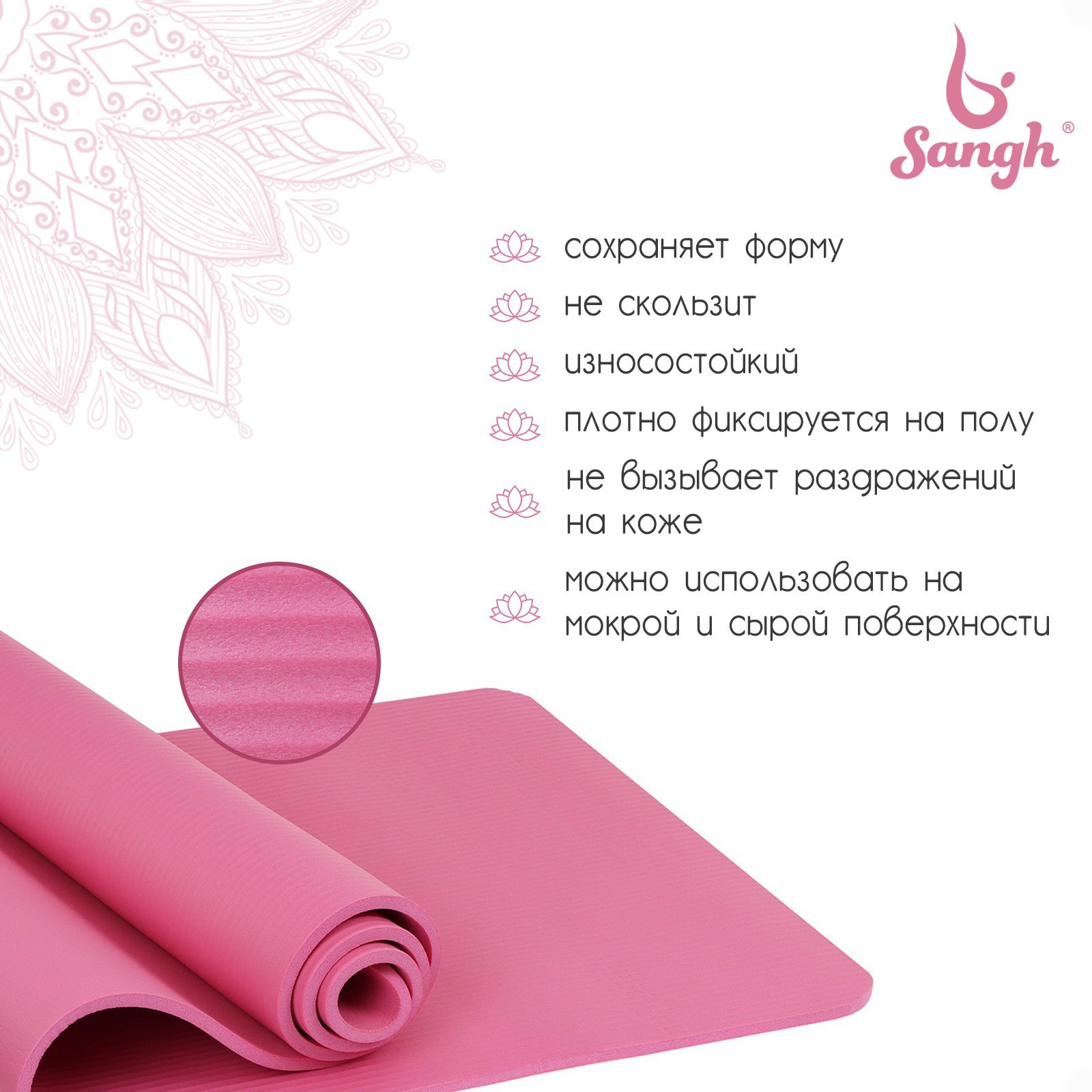 Коврик для йоги sangh, 183x61x1 см, цвет розовый. Коврик подходит для занятий йогой и фитнесом дома и в спортивных залах. Помогает в выполнении асан или других упражнений. Смягчает упор тела на твёрдую поверхность. Сохраняет форму после выполнения упражнений. Цвет: Розовый Длина, см: 183 Ширина, см: 61 Толщина, мм: 10 Возраст: Взрослый Материал: NBR Особенности: Эластичный Особенности: Нескользящий Вид: Классический  развернуть описание ▼