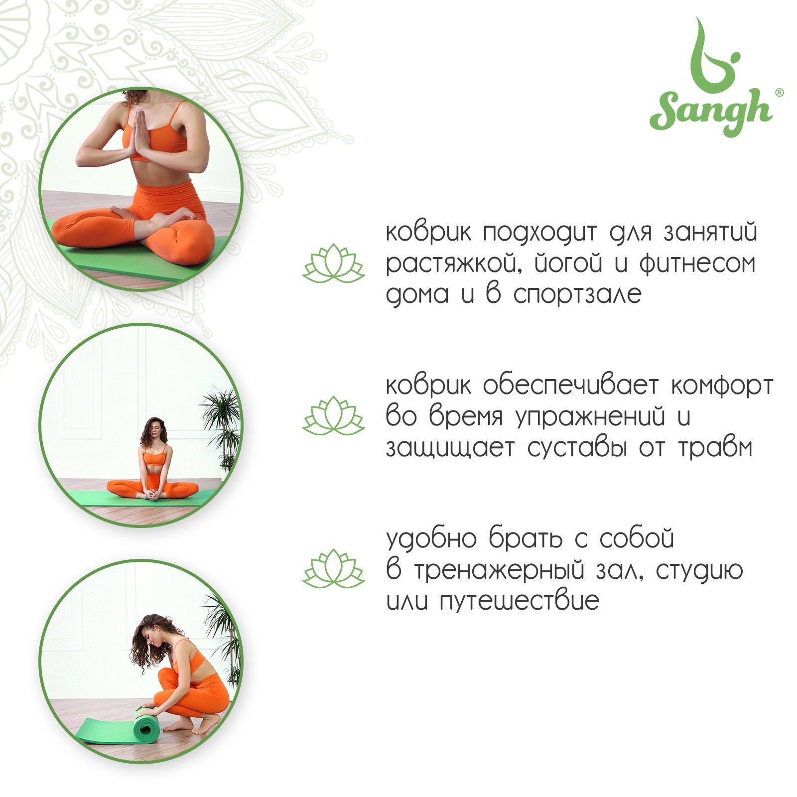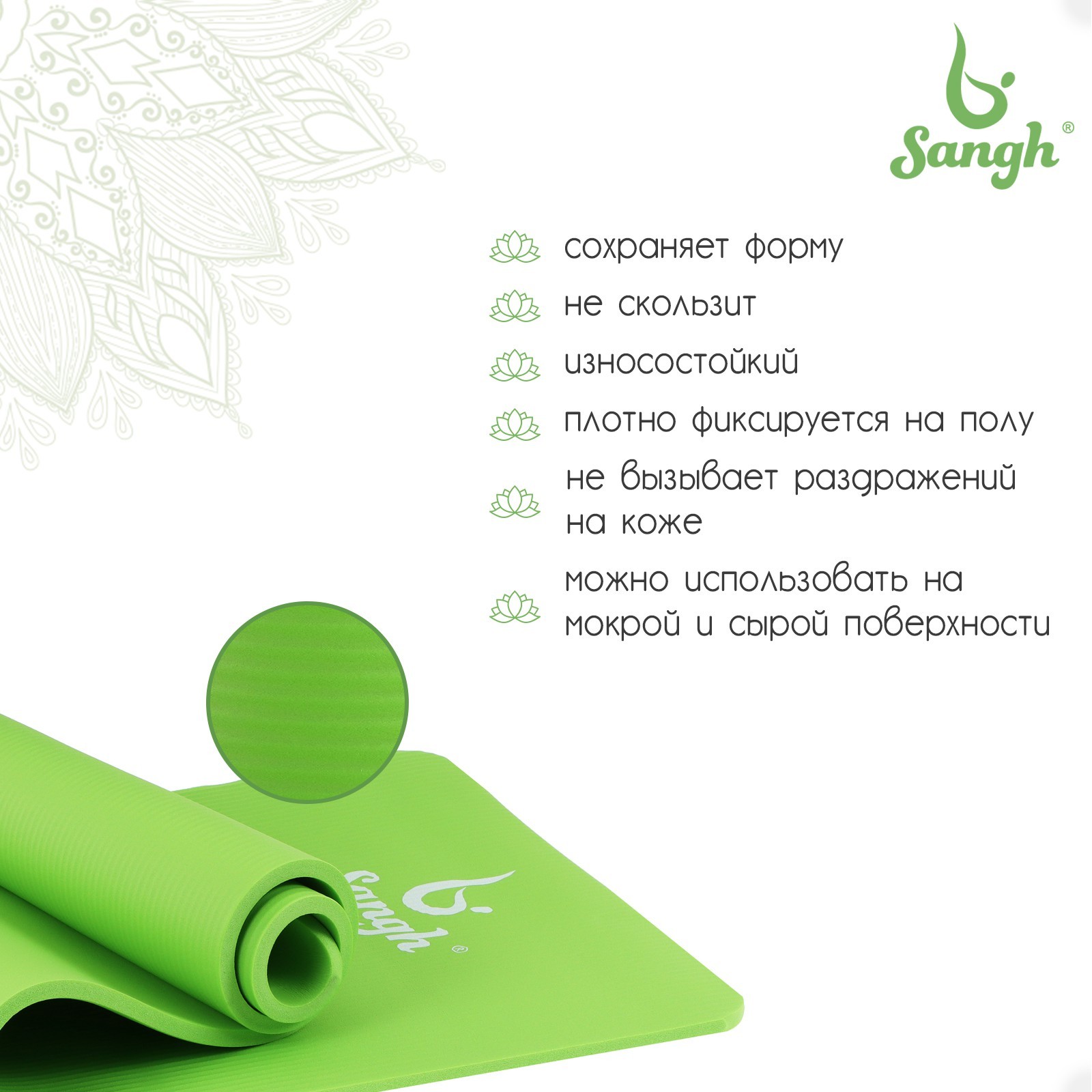 Коврик для йоги Sangh, 183x61x1,5 см, цвет зелёный