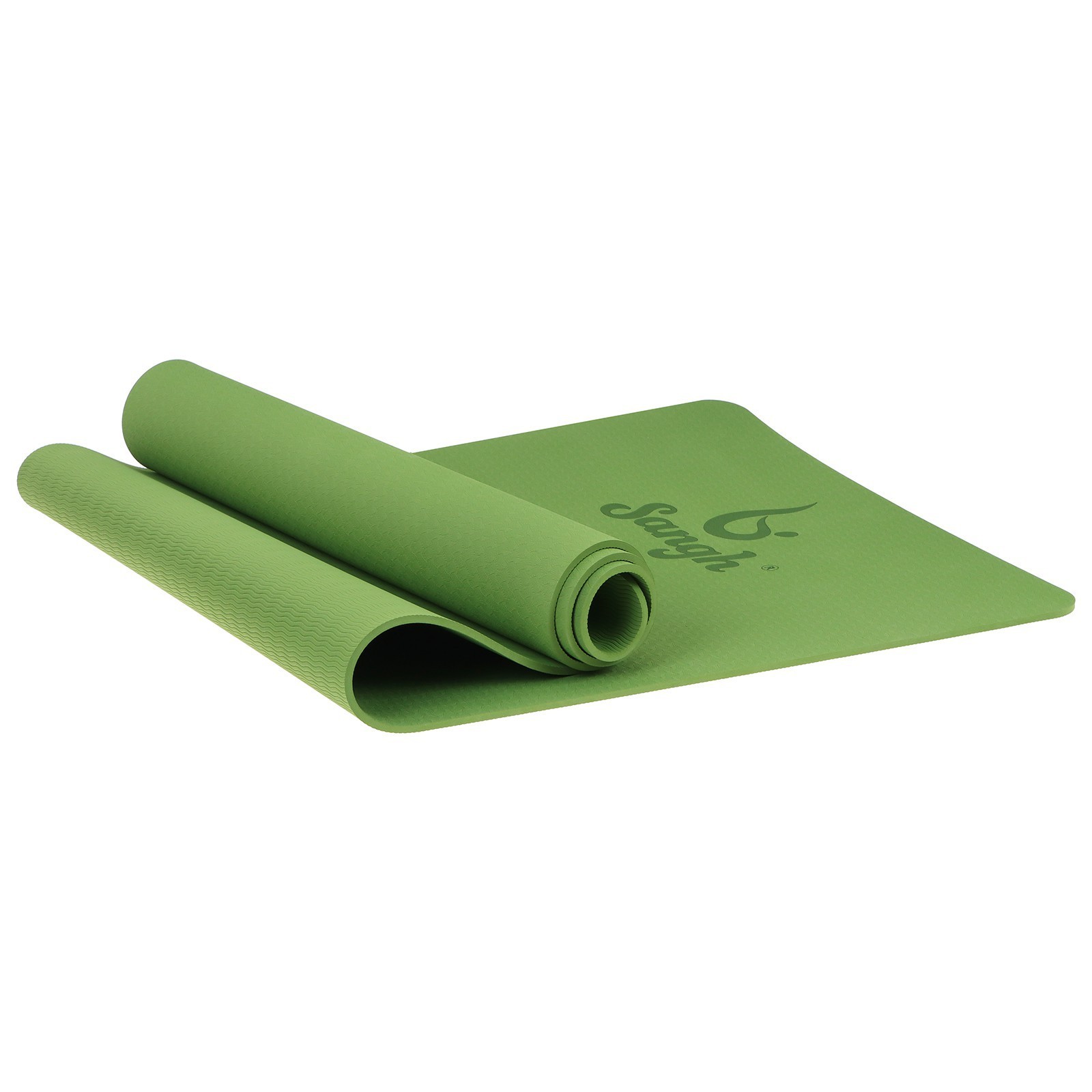 Коврик для йоги sangh, 183x61x0,6 см, цвет зелёный. Коврик подходит для занятий йогой и фитнесом дома и в спортивных залах. Помогает в выполнении асан или других упражнений. Смягчает упор тела на твёрдую поверхность. Сохраняет форму после выполнения упражнений. Особенность коврика из термопластичного эластомера состоит в том, что он обладает антискользящими свойствами, сохраняет форму, имеет плотную и упругую структуру. Коврик из термопластичного эластомера эластичный и мягкий, приятный на ощупь, не выгорает на солнце и устойчив к распространению бактерий. Но его нужно беречь от обильной влаги, чтобы не допустить скольжение на гладкой поверхности. Цвет: Зелёный Длина, см: 183 Ширина, см: 61 Толщина, мм: 6 Возраст: Взрослый Материал: Термопластичный эластомер Особенности: Эластичный Особенности: Нескользящий Особенности: Водоотталкивающий Вид: Классический  развернуть описание ▼