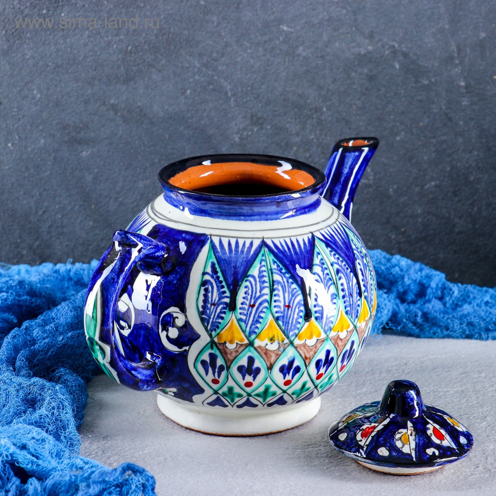 Чайник риштанская керамика "узоры", 1000 мл, синий