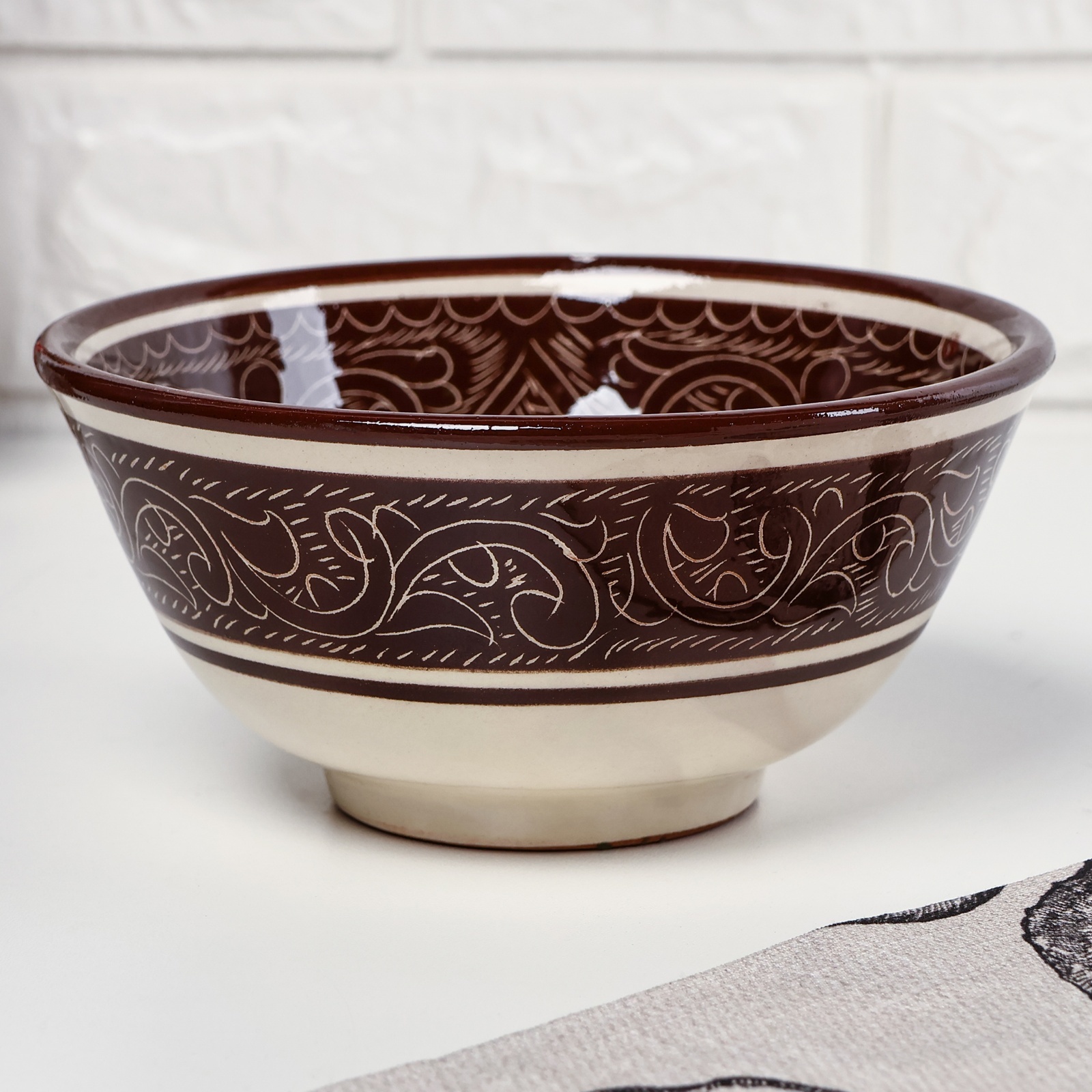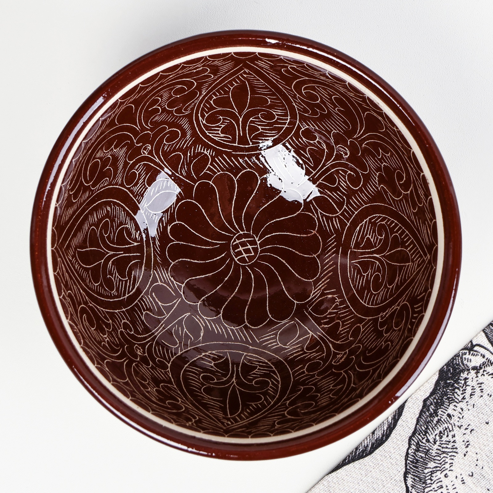 Набор салатников риштанская керамика 15см, коричневые, 3шт в подар упак