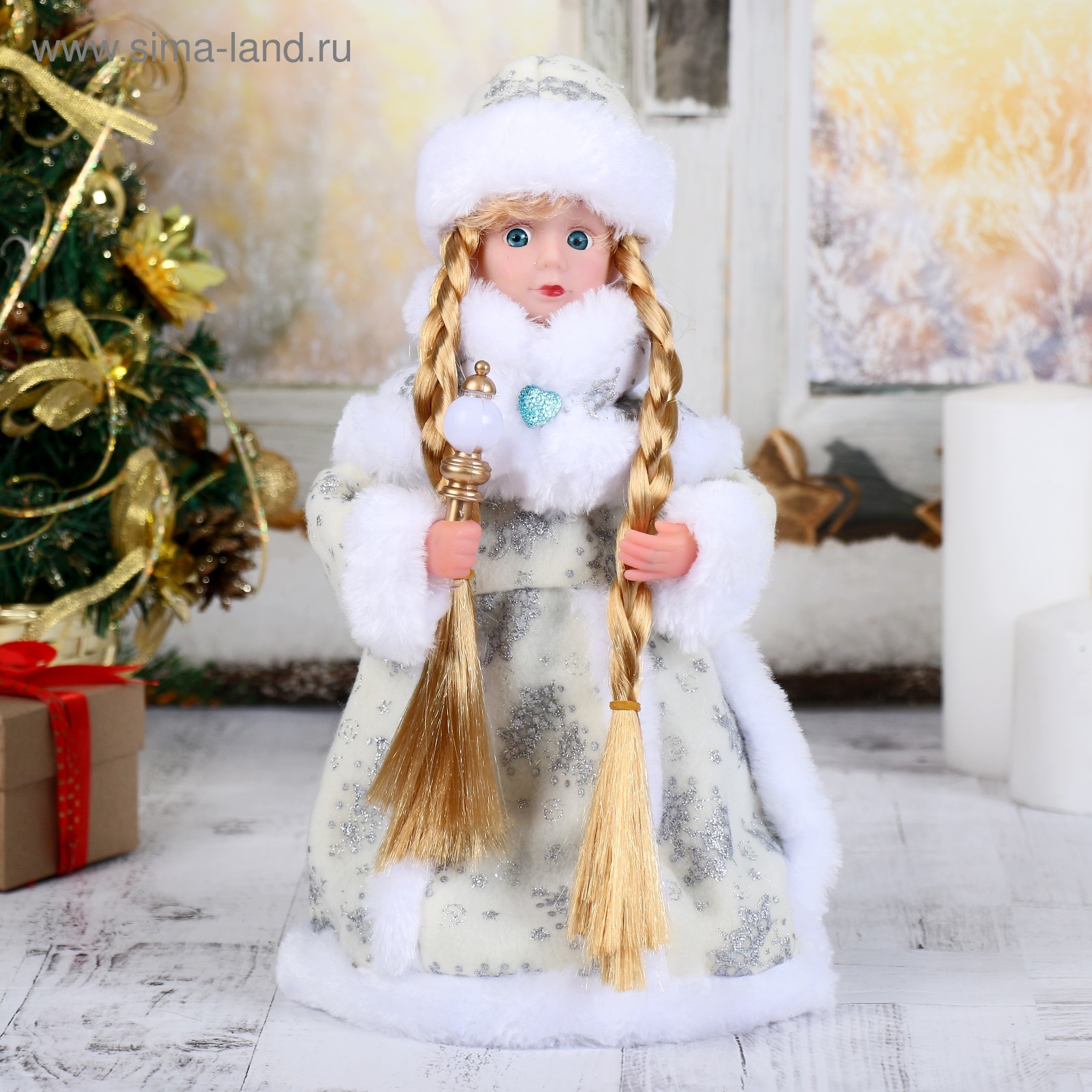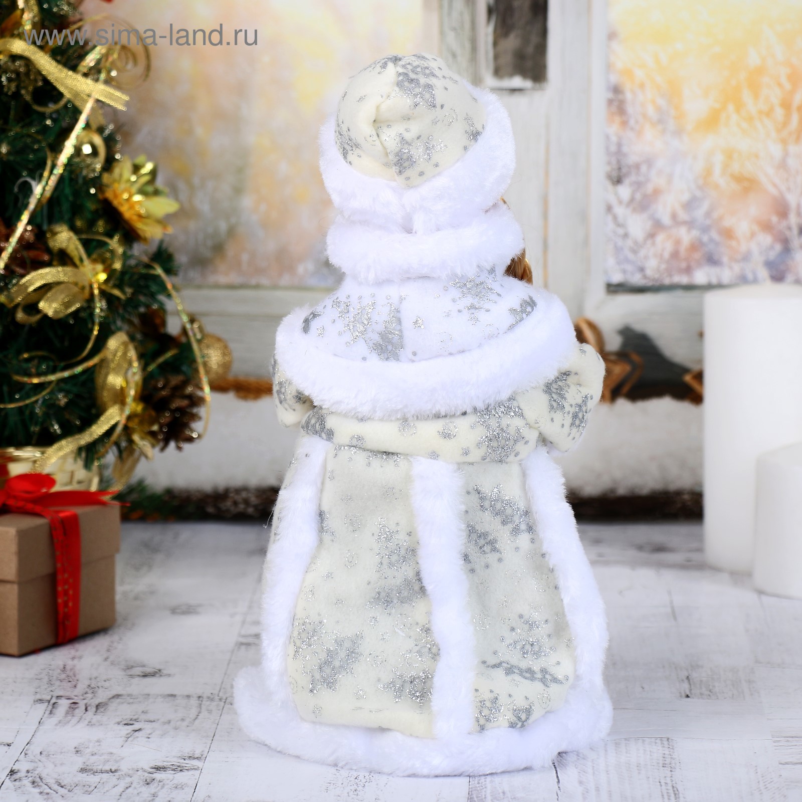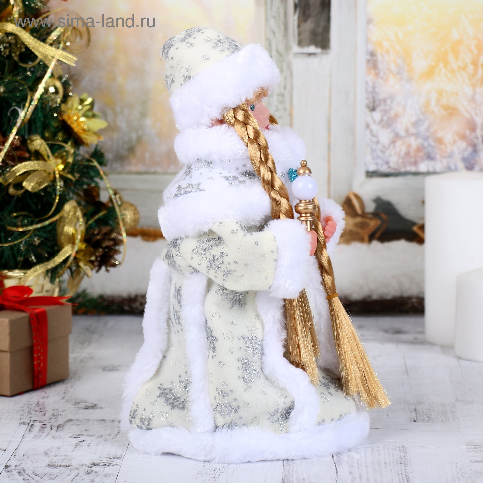 Снегурочка под ёлку «зимнее волшебство. белая шубка, с посохом и синей пуговкой» двигается, 31 см. Фигурка Снегурочки высотой 31 см в белой шубке с посохом и синей пуговкой добавит изящества и движения в новогодний интерьер. Воплощая сочетание ар-деко, классики, скандинавского минимализма и советского ретро, она создаёт атмосферу праздничного уюта без использования звука и подсветки. Особенности Оптимальная высота 31 см подходит для украшения ёлки и новогоднего стола.Движущиеся элементы оживляют композицию и привлекают внимание.Питание от батареек обеспечивает автономность и удобство размещения.Универсальный дизайн подходит для всех возрастов и стилей интерьера.Сочетание стилей — ар-деко, классика, скандинавский и советский — подчёркивает уникальность изделия.Создаём праздничное настроение Эта Снегурочка становится центром внимания в новогоднем декоре, привнося плавность движений и гармонию форм. Она объединяет традиции и современные тенденции, помогая создать атмосферу зимнего волшебства и семейного тепла. Тип питания:От батареек|Для кого:Унисекс|Для кого:Для девочки|Для кого:Для мальчика|Высота, см:31|Возраст:Для взрослых|Символ года:Нет|Тематика праздника:Новый год|Звук:Нет|Работает от сети:Нет|Свет:Нет|Особенности куклы:Двигается|Стиль:Новогоднее барокко|Стиль:Скандинавский|Стиль:Ар-деко|Стиль:Советский|Стиль:Классика|Страна:Китай  развернуть описание ▼