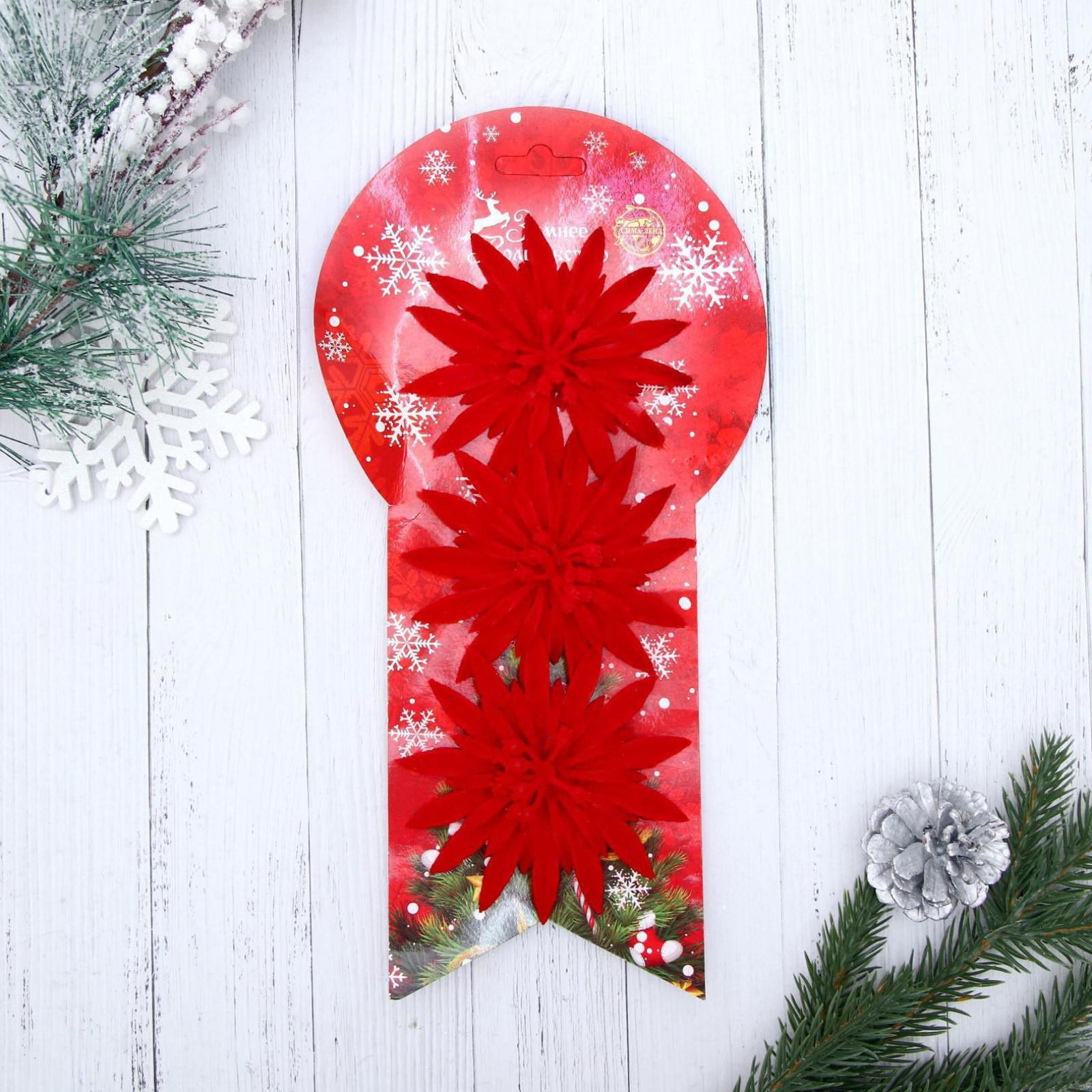 Ёлочные игрушки 3 шт. «зимнее волшебство. астра» пластик, 8 см, красный