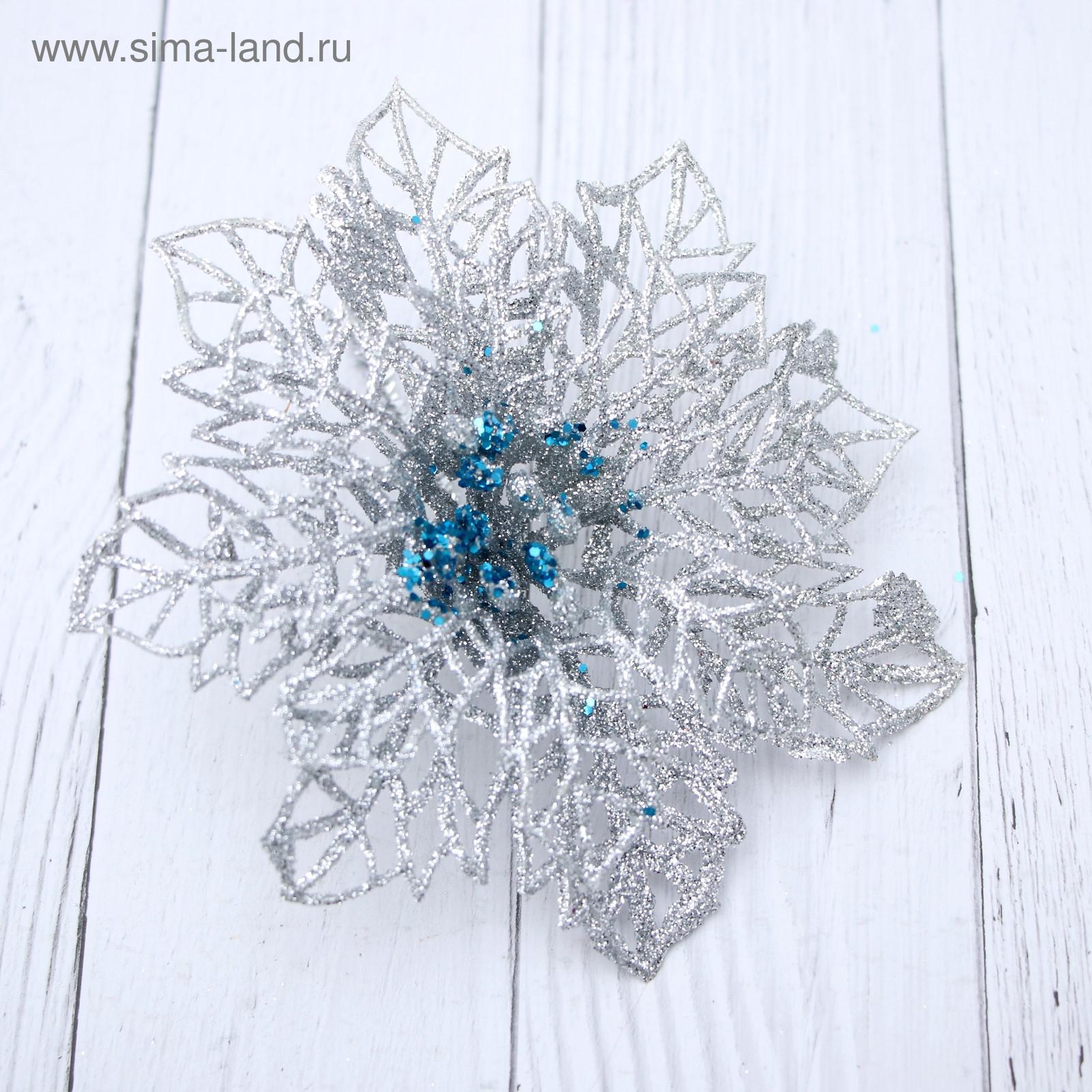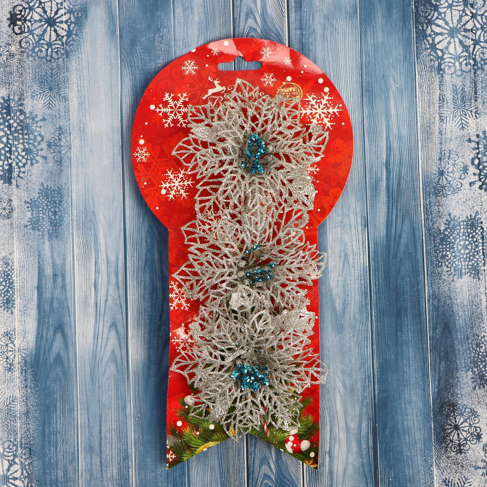 Ёлочные игрушки 3 шт. «зимнее волшебство. ажурный цветок» пластик, 10.5 см, серебро