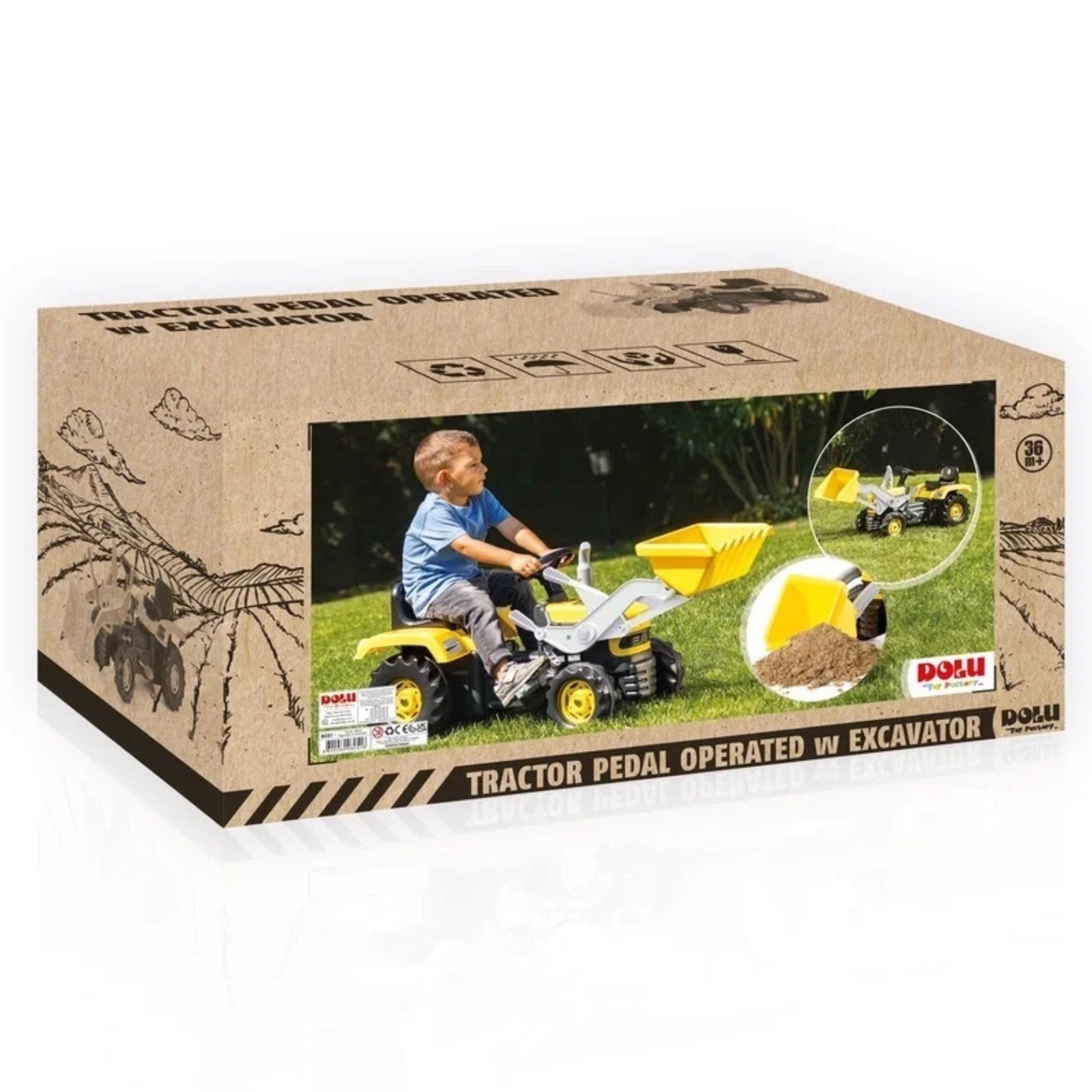 Трактор–экскаватор педальный, цвет жёлто-чёрный. Вид транспорта: Трактор Цвет: Чёрный Цвет: Жёлтый Для кого: Унисекс parts count: 0 Количество колёс: 4 Высота сиденья, см: 35 Модельный год: 2022 Материал рамы: Пластик Материал колёс: Пластиковые Рекомендуемый возраст, лет: 3 Педаль: Да Руль: Поворотный Материал рамы: Пластик Среда перемещения транспорта: Наземный транспорт Тематика назначения: Личный транспорт  развернуть описание ▼