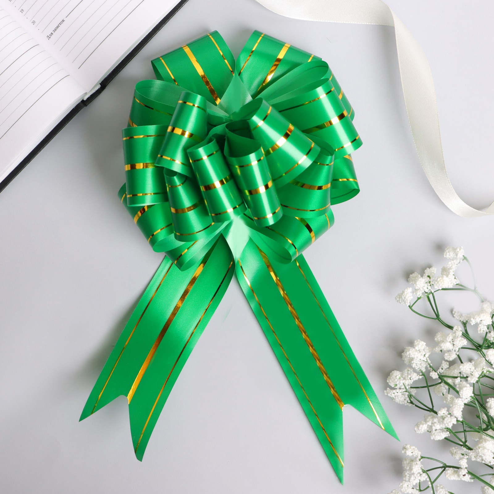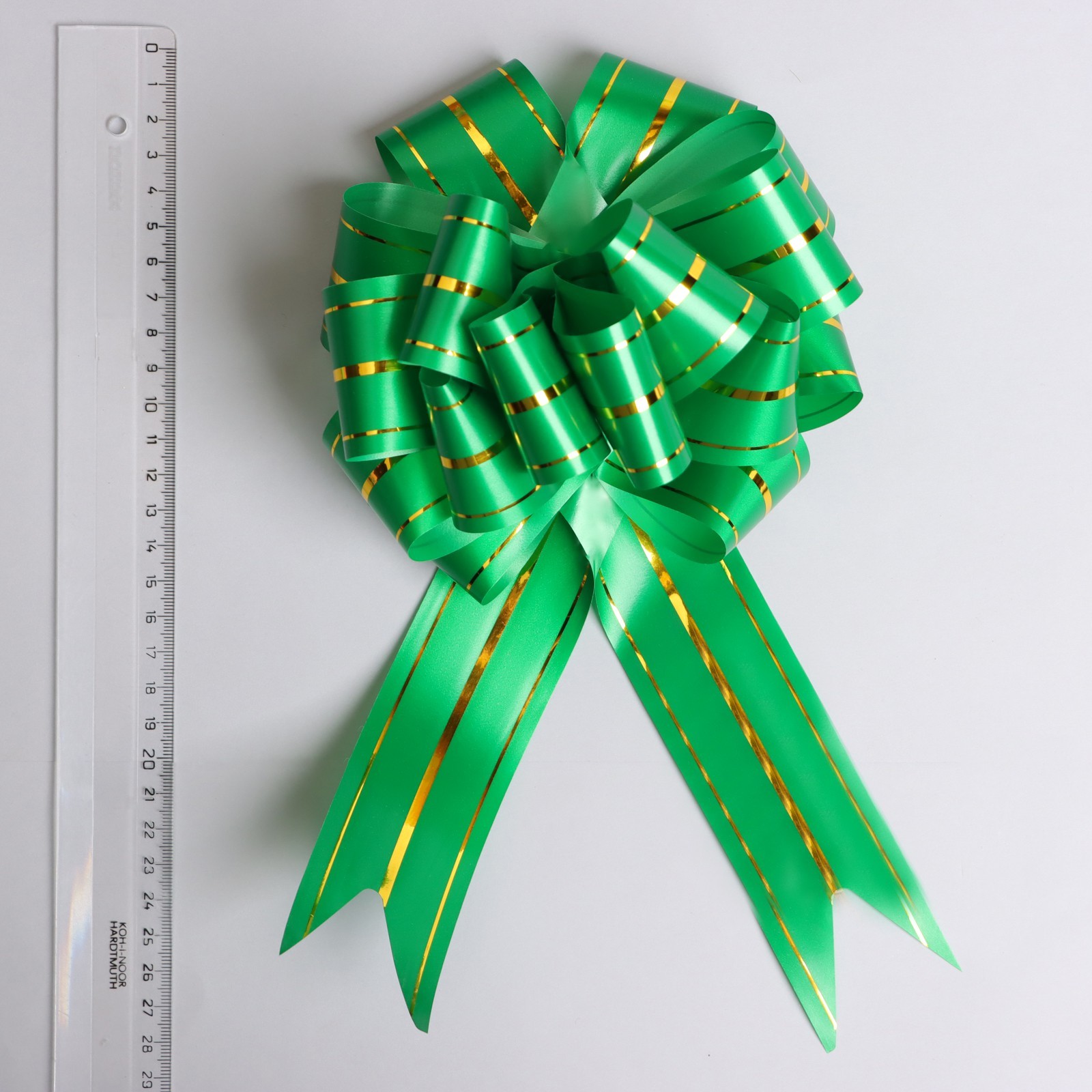 Подарочный бант - шар №4.5 три золотых полосы, зеленый, для упаковки подарков. Зелёный бант-шар с золотыми полосами станет ярким акцентом для оформления подарков, праздничных мероприятий или декора интерьера. Его глянцевая поверхность и чёткие линии создают эффект элегантности, а классическая форма шара подходит для любого стиля. Особенности Глянцевый зелёный цвет с золотыми полосами добавляет праздничный блеск. Диаметр 14,5 см делает бант заметным и выразительным. Ширина ленты 4,5 см обеспечивает плотную и аккуратную форму. Изготовлен из прочного пластика, который сохраняет форму и долговечен.Где использовать Бант-шар идеально подходит для украшения подарочных коробок, оформления свадебных церемоний, детских праздников или декора помещений. Его универсальный дизайн сочетается с разными цветовыми решениями и стилями, добавляя завершённость любому образу. Почему выбирают этот бант Благодаря сочетанию зелёного цвета и золотых полос, бант выглядит стильно и современно. Его легко закрепить на любой поверхности, а прочный материал гарантирует, что он сохранит форму даже после длительного использования. Набор:Нет|Особенности цвета:Глянцевый|Цвет:Зелёный|Диаметр, см:14.5|Ширина ленты, см:4.5|Тематика:Линии|Тематика праздника:Юбилей|Тематика праздника:Универсальная тематика|Тематика праздника:День рождения|Материал:Пластик|Вид банта:Шар|Страна:Китай  развернуть описание ▼