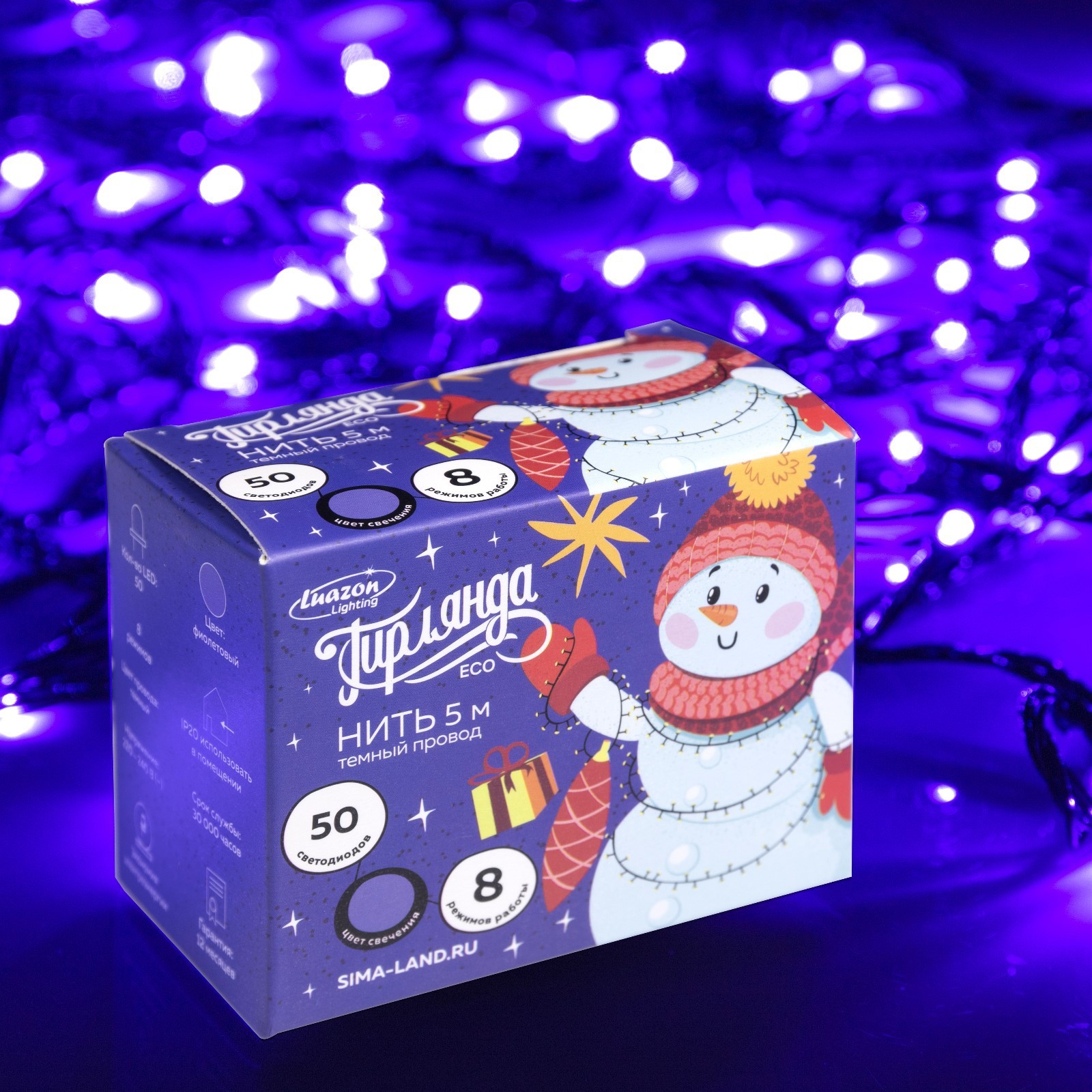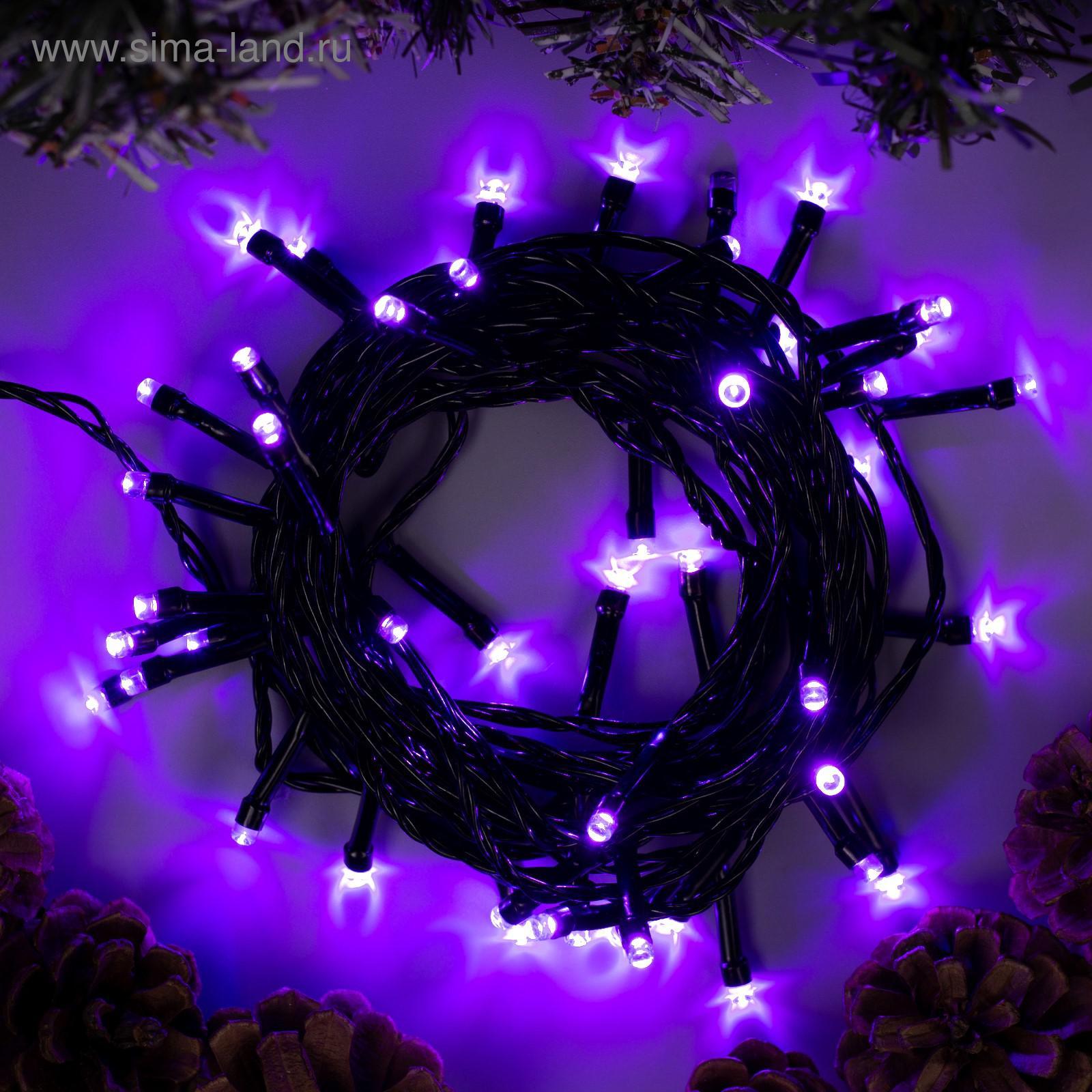 Гирлянда «нить» 5 м, Ip20, тёмная нить, 50 Led, свечение фиолетовое, 8 режимов, 220 в