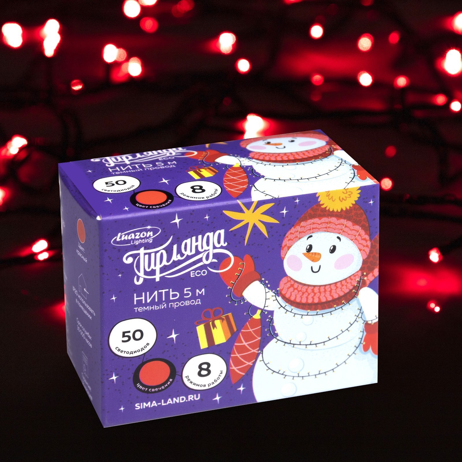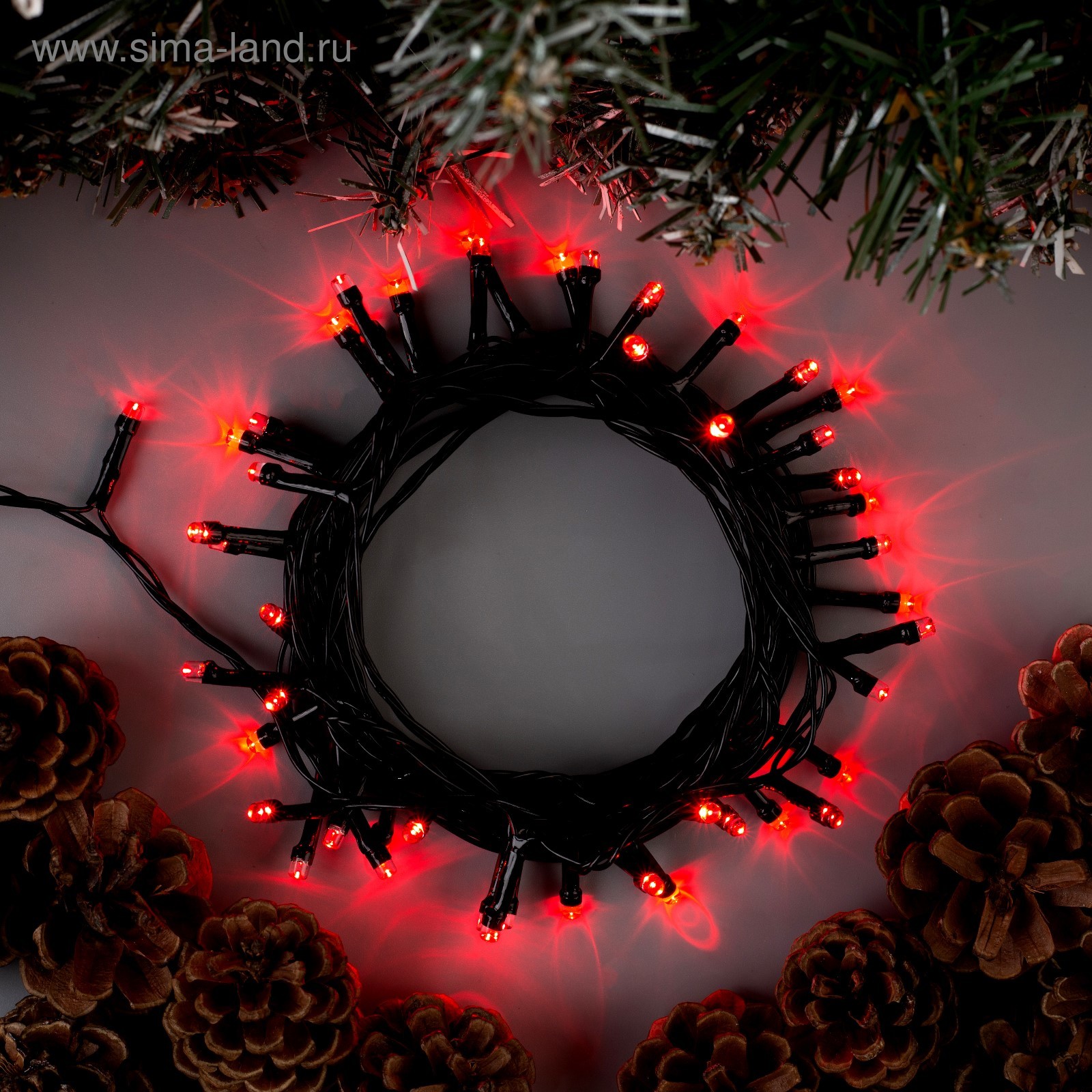 Гирлянда «нить» 5 м, Ip20, тёмная нить, 50 Led, 8 режимов, 220 в, свечение красное