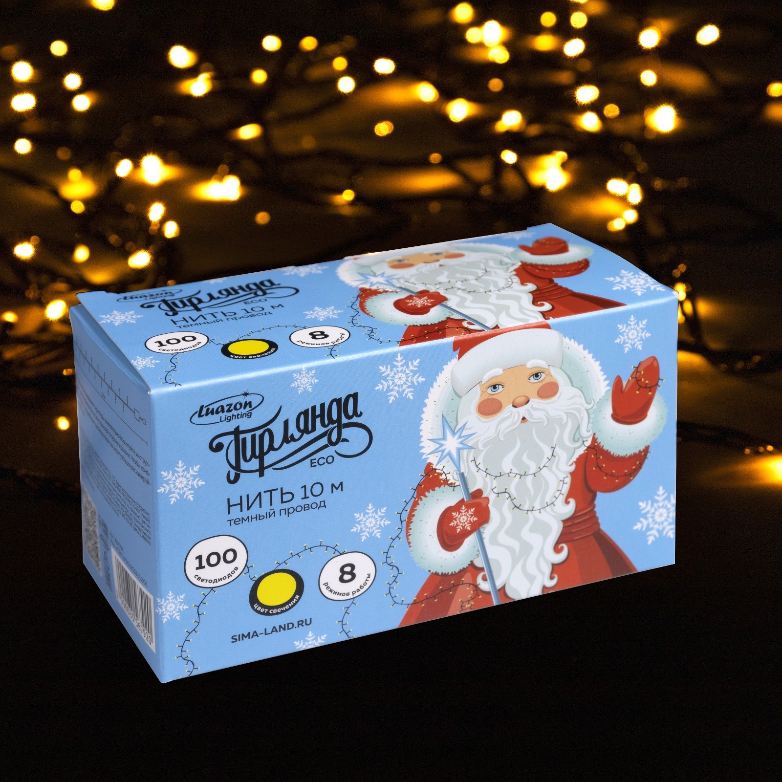 Гирлянда «нить» 10 м, Ip20, тёмная нить, 100 Led, 8 режимов, 220 в, свечение жёлтое